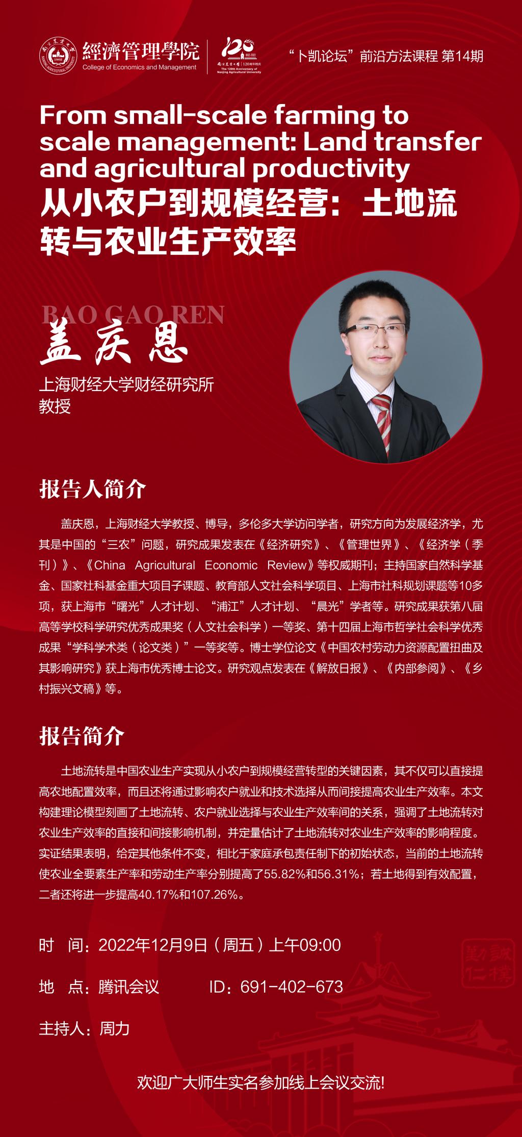 百廿校庆学术论坛——卜凯论坛•前沿方法课程 第14期