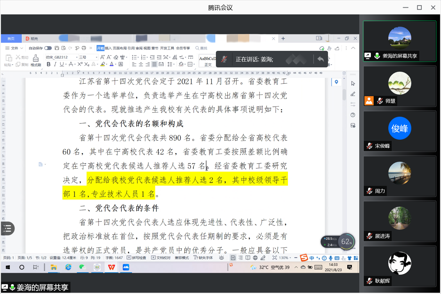 2021年8月23日,英国正版365官方网站党委召开视频工作会议。院党委书记姜海主持会议,全体党委委员参加会议。