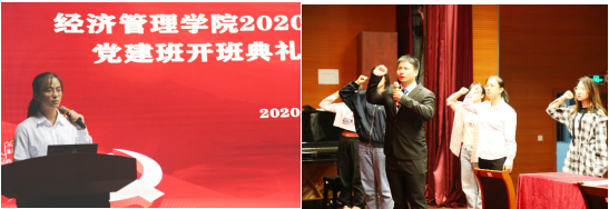 开班典礼在庄严的国歌声中正式开始。本次开班仪式分为两个部分。第一个部分为开班典礼。首先,宋俊峰简要介绍党建班教学计划。接着,党员代表张文文同学发言,部分党员代表重温入党誓词。最后,宋俊峰宣布英国正版365官方网站2020-2021学年第一学期党建班开班。