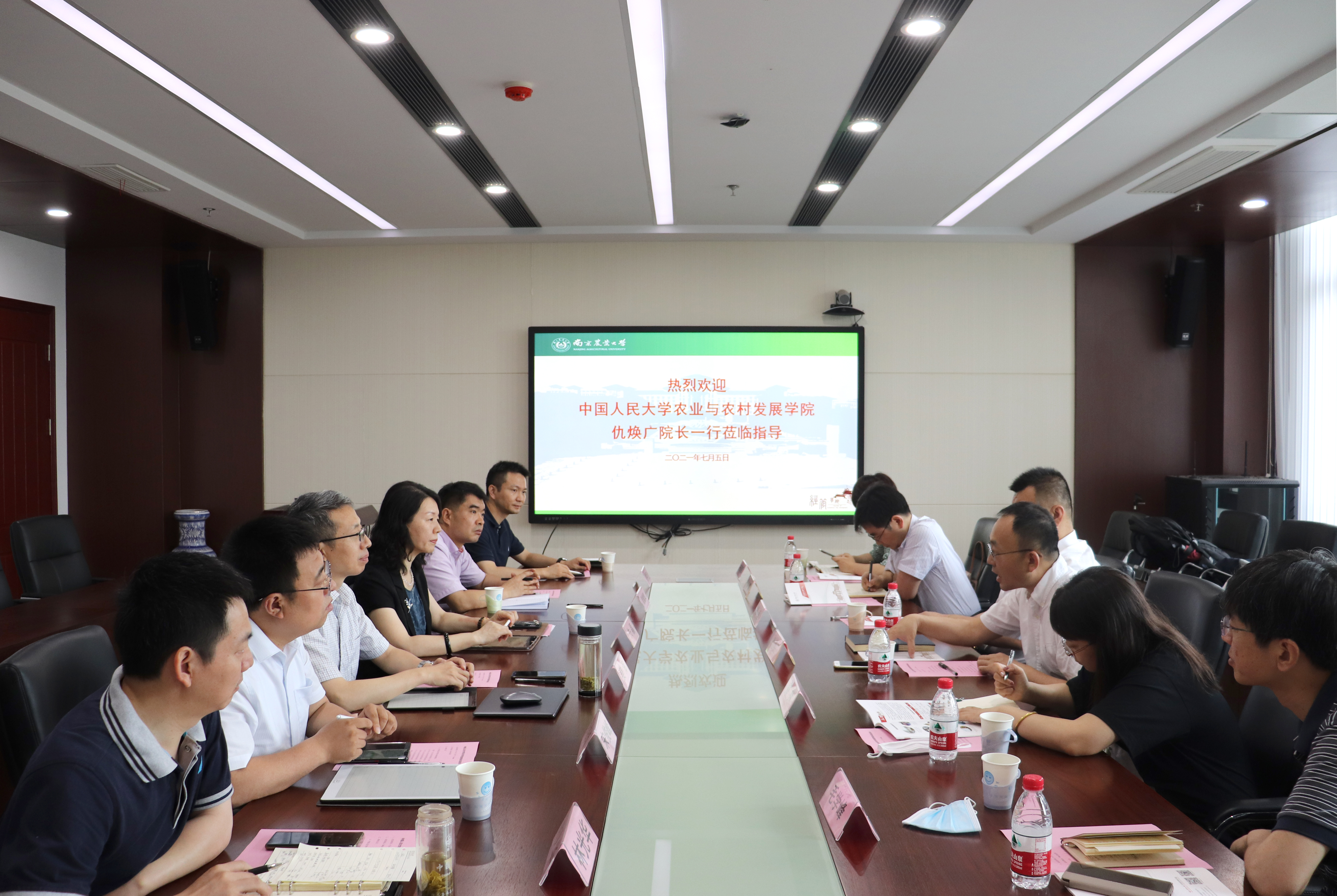 此次随同来访交流的还有中国人民大学农业与农村发展学院党委副书记康琳、副院长郑适、副院长毛学峰、副院长钟真以及田晓晖副教授和吴晨圆老师。
