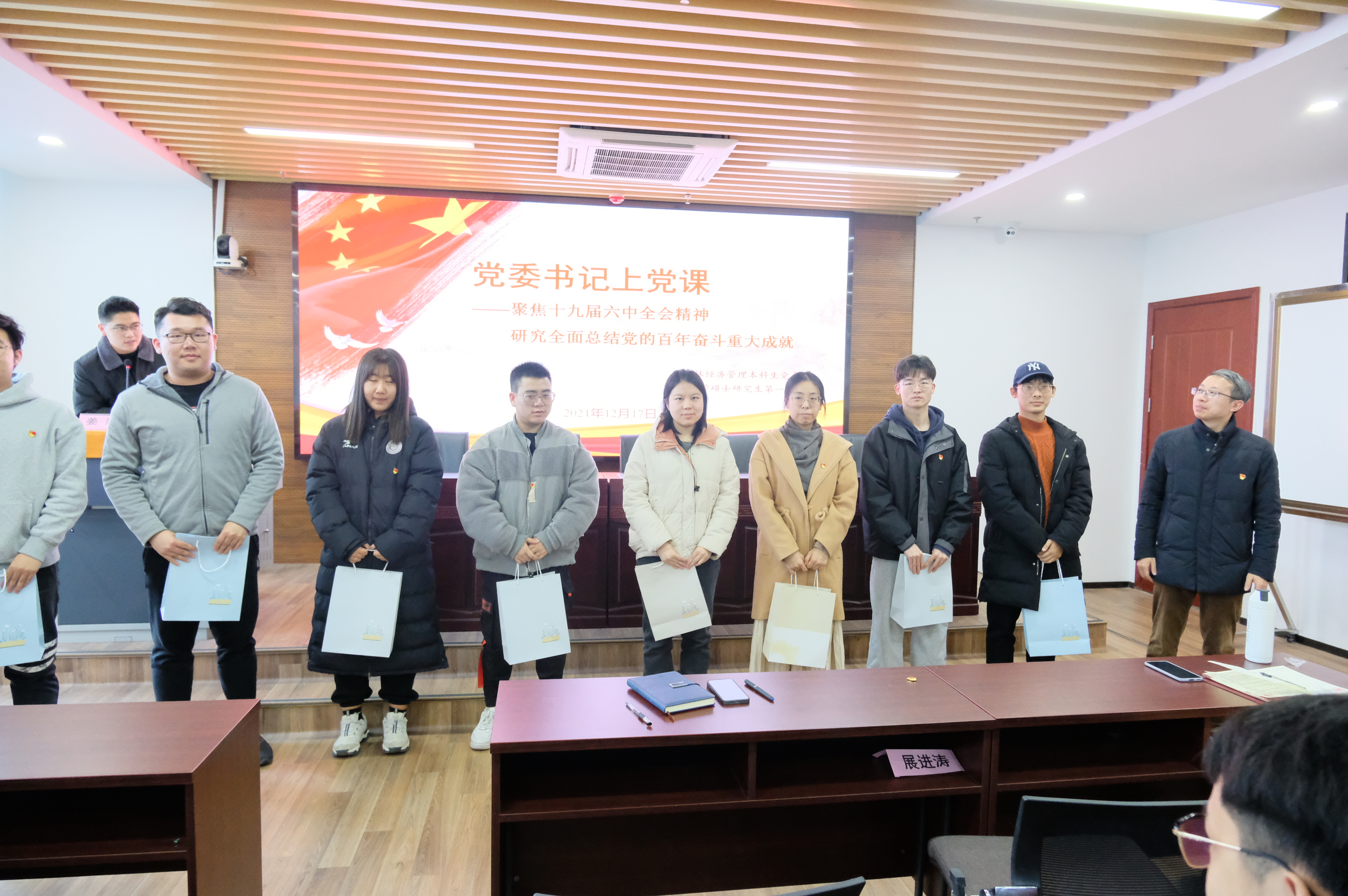 2021年12月17日下午,农林经济管理本科生党支部和管理学硕士研究生第一党支部于第三实验楼706开展党的十九届六中全会精神专题学习,联系支部的学院党委书记姜海上专题党课。两个支部50余名党员参加了学习。