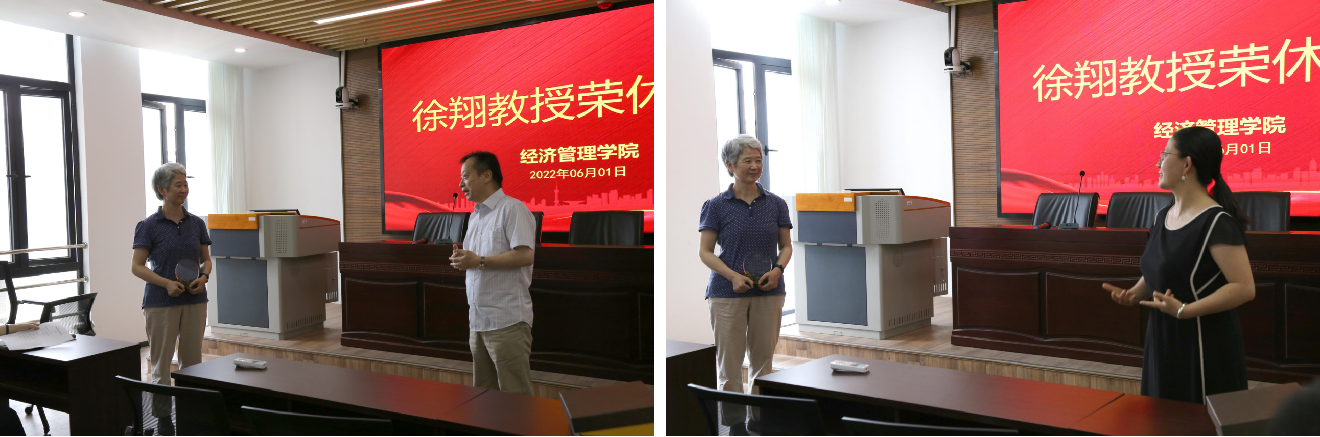 2022年6月1日下午,学院于第三实验楼706报告厅召开教职工大会。会上,举办了学院徐翔教授荣休仪式。仪式由院长朱晶主持。