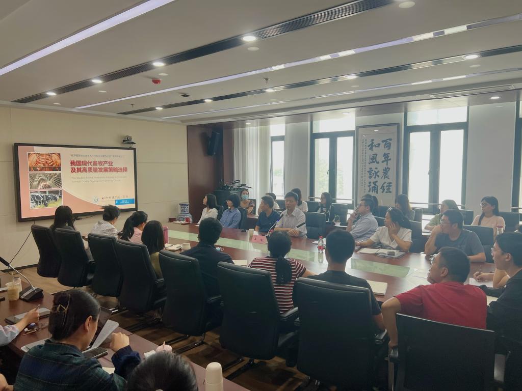 9月23日,英国正版365官方网站青年人才学科交叉融合计划第二课在第三实验楼716会议室举办。动物科技学院王恬教授作《我国现代畜牧产业及其高质量发展策略选择》专题报告。学院青年教师、硕博士等近50人参与现场交流。本次活动由院党委书记易福金主持。