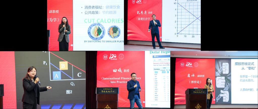 经过初赛选拔,进入决赛的教师分别为杨璐副教授、纪月清教授、吴蓓蓓副教授、田曦教授、虞祎副教授。决赛现场,他们分别精彩呈现了10分钟课程讲演。