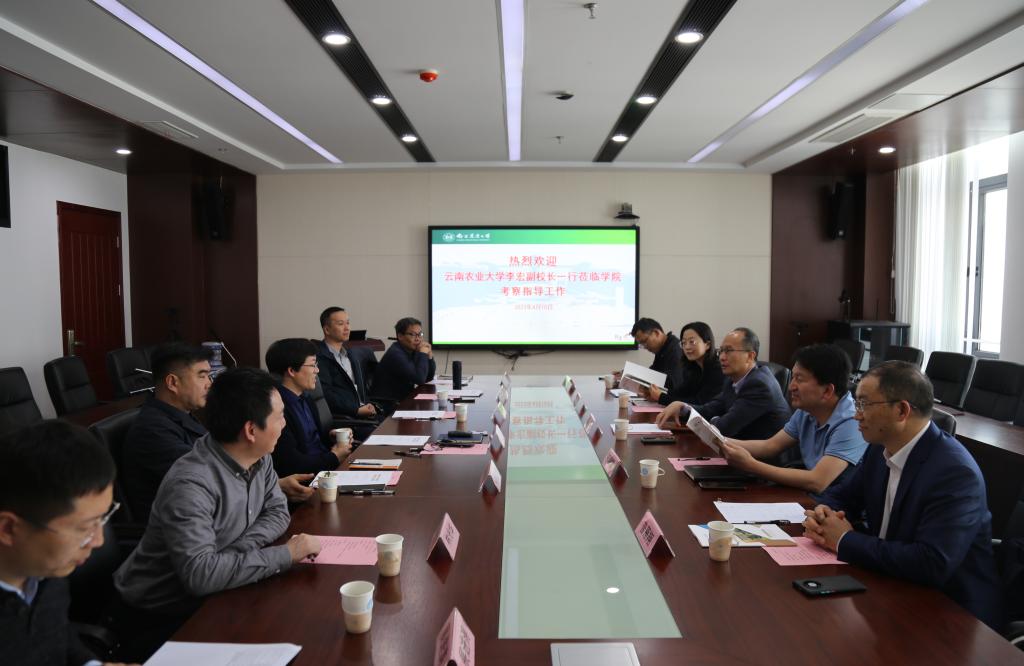 4月10日下午,云南农业大学副校长李宏、人事处处长初晓辉、英国正版365官方网站院长陈蕊等一行来英国365官网交流访问,学院党政领导班子全体成员及部分教师代表出席会议,会议由院长徐志刚主持。