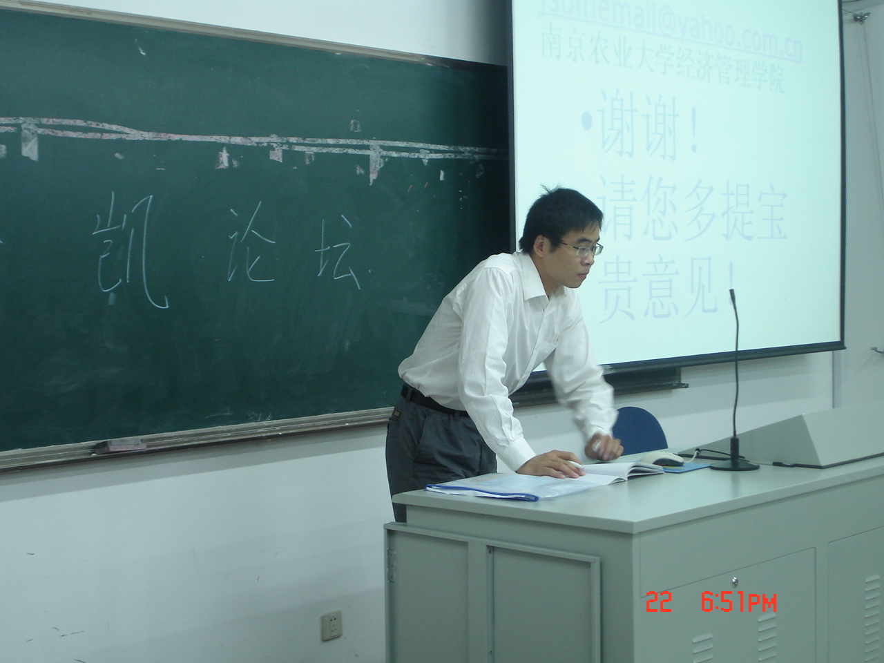 几位报告人对于当前经济热点问题、社会关注现象进行了有益的阐述。对于农村金融研究中热点问题——农户贷款难问题,胡睿同学从信用社对农户的信贷配给问题入手进行了分析。周月书老师随后进行了点评,周老师旁征博引,又不失幽默风趣,对这一现象进行了深刻分析;对于新型农村合作医疗制度存在的问题,江淑斌同学从制度层面展开论述,王奕秋老师对此问题进行了相关点评,王老师新颖的观点,充分彰显了其深厚的经济学素养;对于粮食直接补贴政策对粮食生产的影响,刘俊杰同学提出了加大粮食直补力度、改进补贴方式、针对不同的粮食品种制定不同的补贴标准等政策建议,王艳老师随后深入浅出的对此问题进行了点评;此外,洪秋妹同学、高名姿同学、张峰同学、潘丹同学分别对各自关注的热点问题进行了分析。各位报告同学学术态度严谨,充分体现了英国365官网研究生良好的学术素养;整个论坛选题广泛、气氛热烈、点评精彩,展示了英国365官网良好的学术氛围。