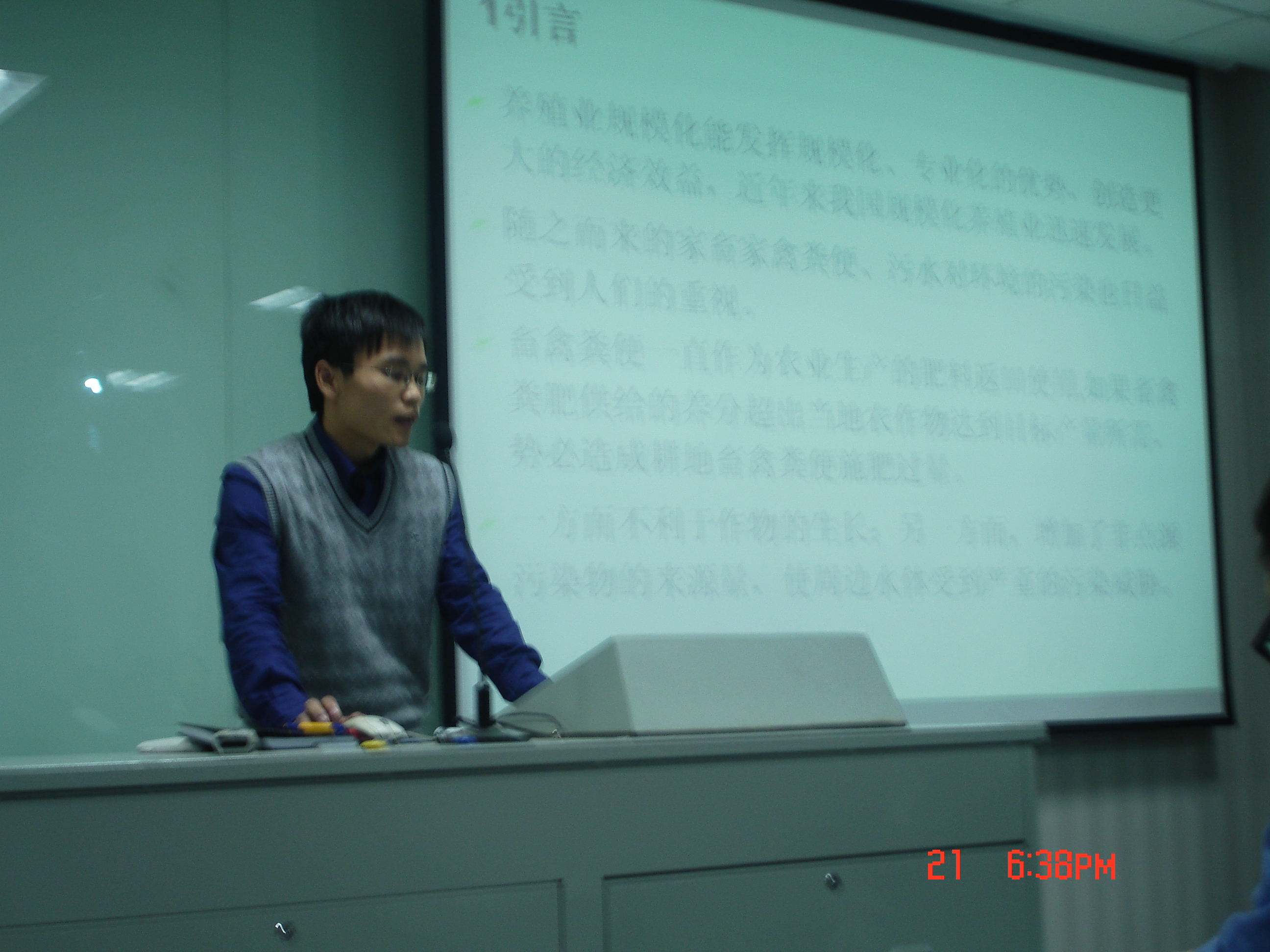 在本次报告中,首先,郭利京博士深入浅出地报告了《畜禽规模化养殖与耕地粪便负荷量平衡分析》,紧接着易小兰博士利用问卷调查、回归模型等方式进行了研究,精彩地向大家展示了自己的研究成果——《消费者对食品安全的关注程度与购买行为的差异分析——以南京市蔬菜市场为例》,然后莫媛博士通过建立指标体系等一系列方法做了研究,引人入胜地做了《浅析中心城市的金融发展水平及影响因素》的报告。接下来,朱新华博士做了《农户土地股份合作制参与愿意及影响因素分析》的报告。最后潘丹博士做了与“三农”密切联系的《新型农村合作医疗对农户预防性储蓄行为的挤出效应研究》的报告。