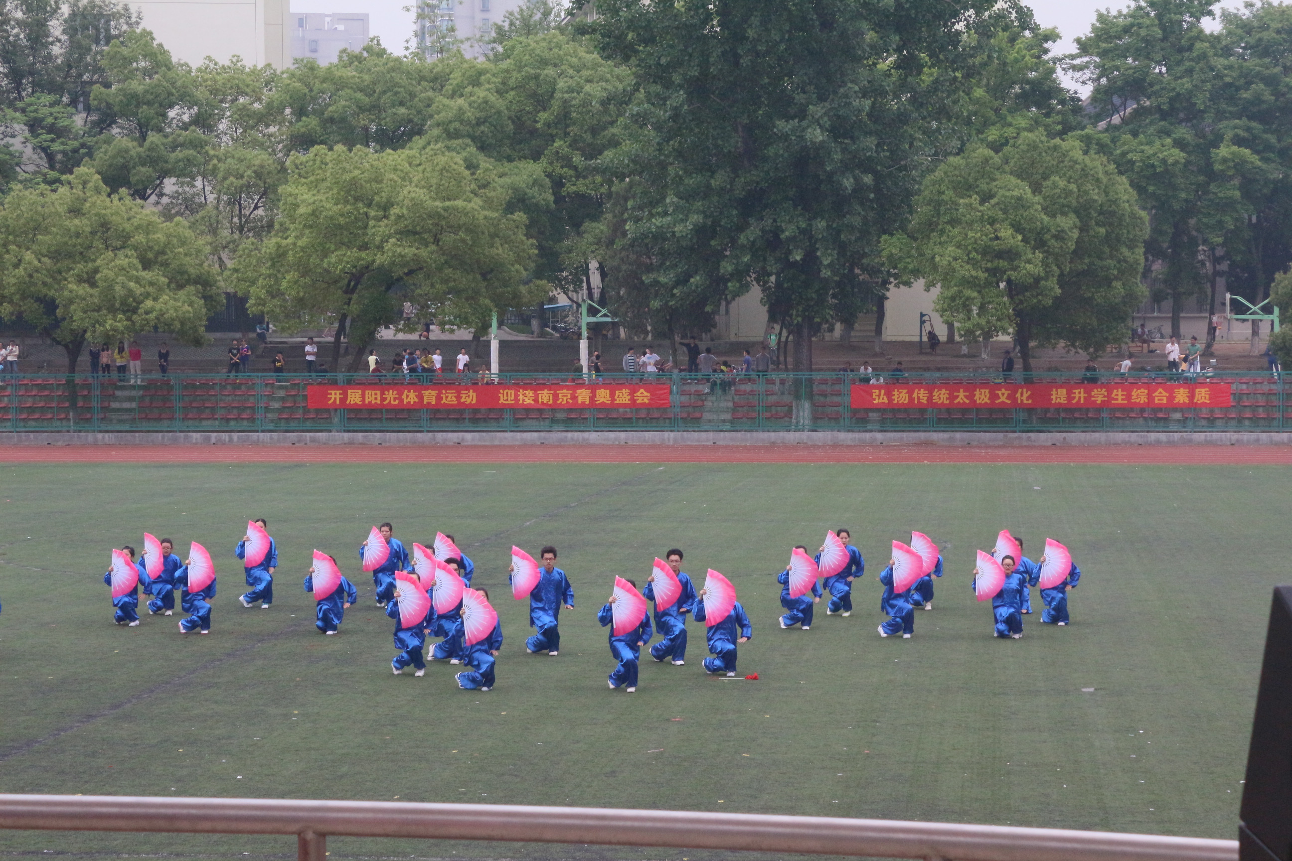 5月17日下午,英国正版365官方网站第四十二届太极拳比赛在大操场拉开帷幕,校领导、有关职能部门负责人、各学院党委副书记、辅导员以及体育部老师与全校师生一起观看了本次比赛。经过激烈角逐,经管院太极拳代表队荣获一等奖。