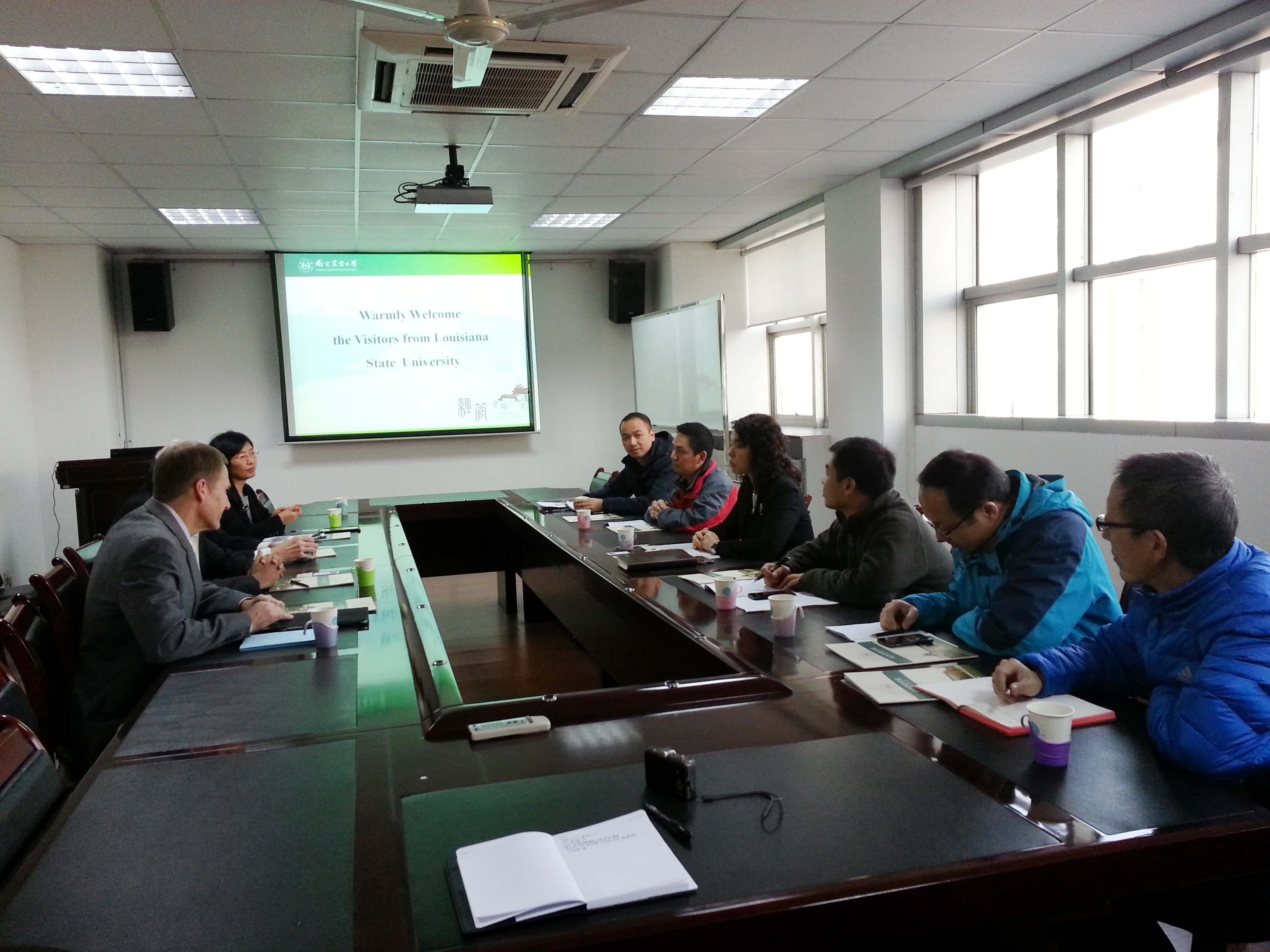 朱晶院长首先对来访客人表示热烈欢迎,对英国365官网的历史发展脉络、国际交流、学科设置、科研方向、教学与研究生培养等总体情况进行了介绍。路易斯安那州立大学农经系系主任Cramer教授也介绍了路易斯安那州立大学农经系的情况,并表达了与英国正版365官方网站英国正版365官方网站进行科研合作、学术交流的愿望。路易斯安那州立大学农业中心国际事务主任Picha也介绍了路易斯安那州的农业发展情况,并对路易斯安那州立大学的农学科研、教学与推广等进行了介绍。路易斯安那州立大学农经系Paudel教授介绍了其自己的科研领域与研究简历,希望能够与英国365官网在农业资源环境经济等方面展开合作研究。出席座谈会的何军教授、林光华教授、王玉峰副教授、耿献辉副教授、周力副教授等也分别介绍了自己的科研领域与研究方向,希望能够在各自的研究领域与路易斯安那州立大学展开进一步合作交流。