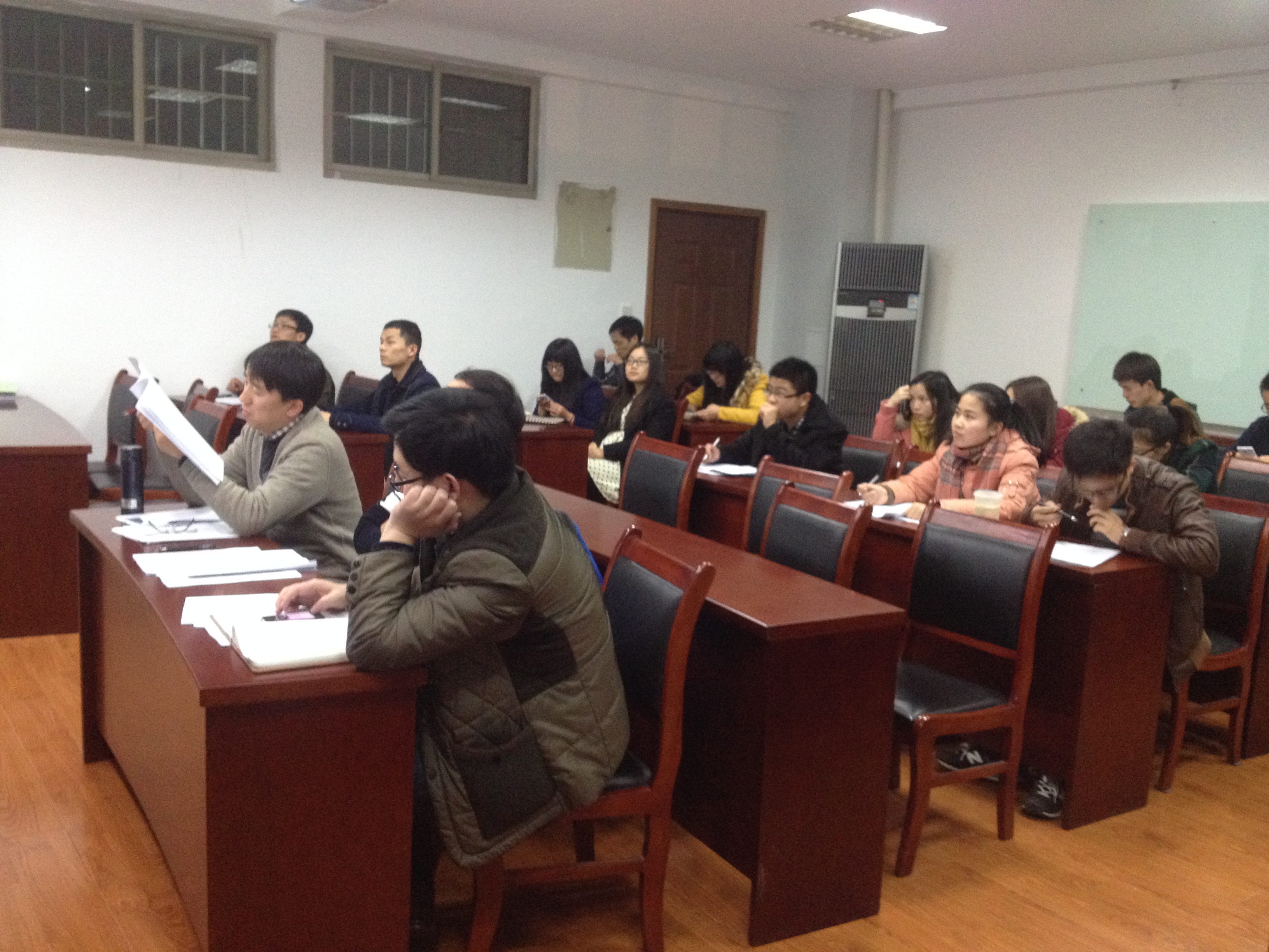 2014年12月30日晚6点30,第六十九期卜凯论坛于逸夫楼5077举行,博士生侯博、卢华、王全忠、陈欢、陆五一做了精彩的汇报,张兵兵老师、王学君老师、严斌剑老师出席论坛并进行了精彩的点评。