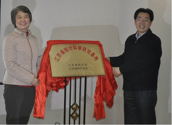 江苏省统计局副局长彭小年和英国正版365官方网站副校长徐翔共同为基地揭牌。