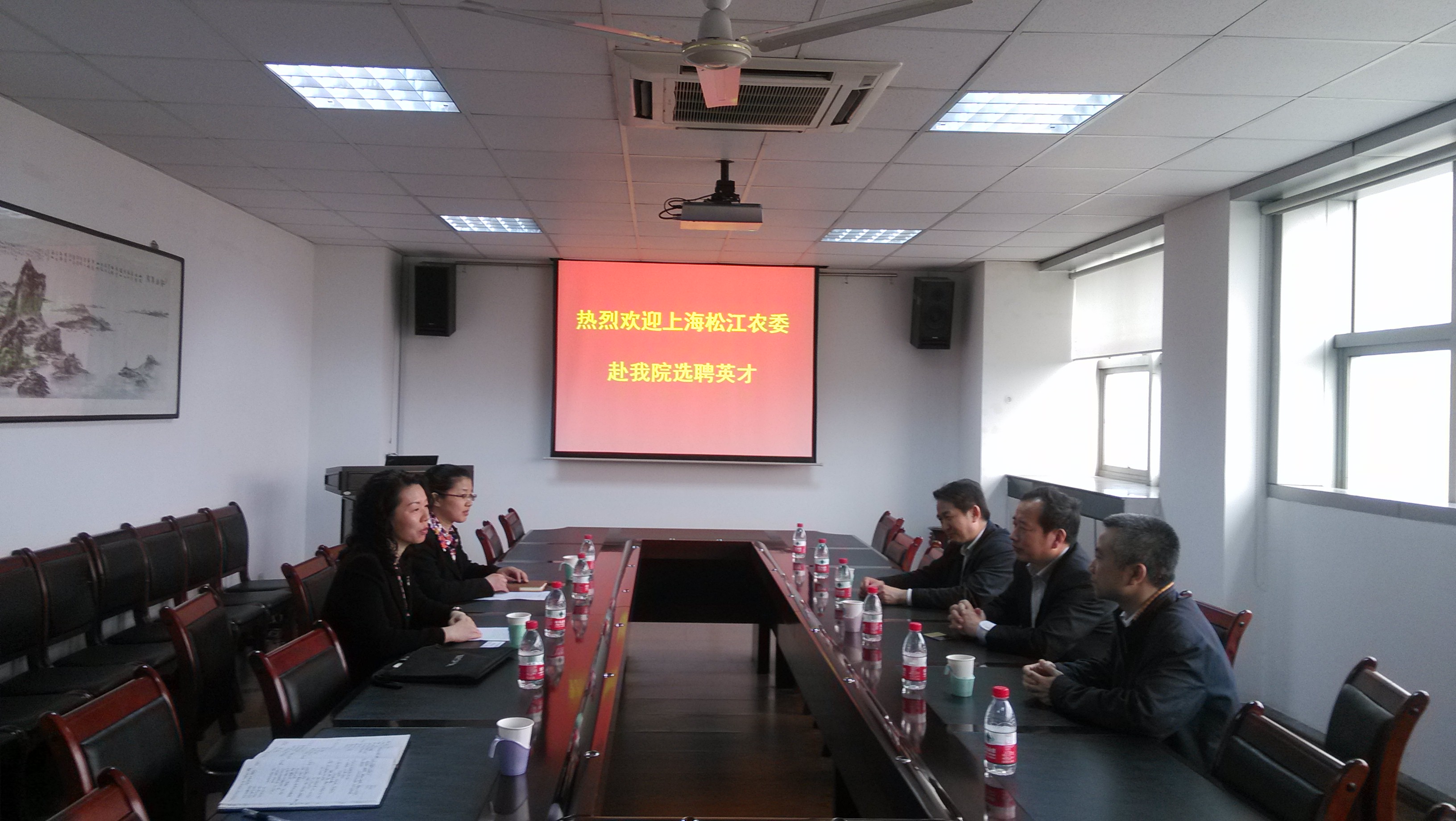 4月1日上午,上海市松江区农业委员会在英国正版365官方网站举行专场招聘会,选聘学院优秀应届毕业生。英国正版365官方网站院长朱晶、院党委书记胡浩、院党委副书记卢忠菊接待了上海松江农委徐桂林副书记一行5人。
