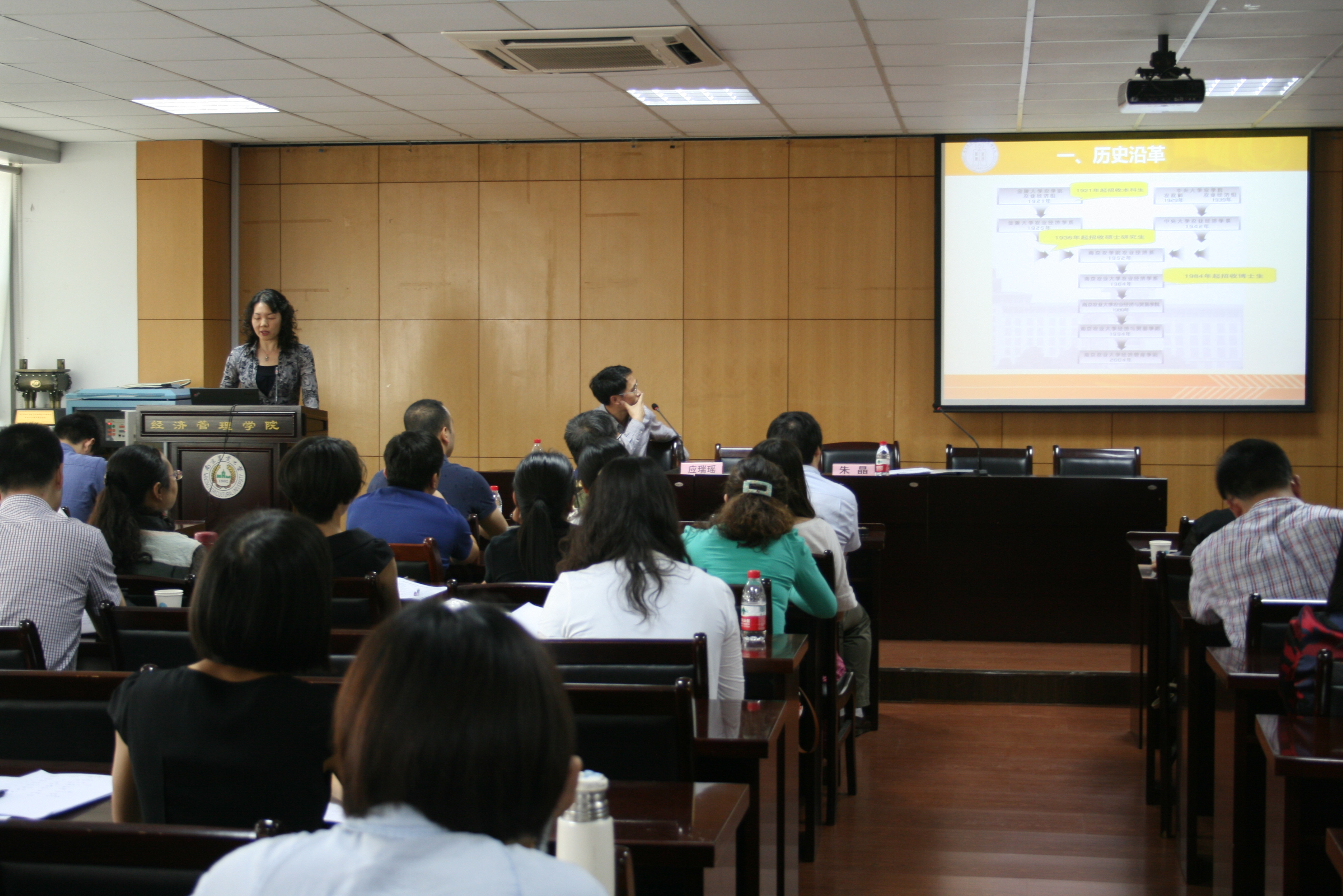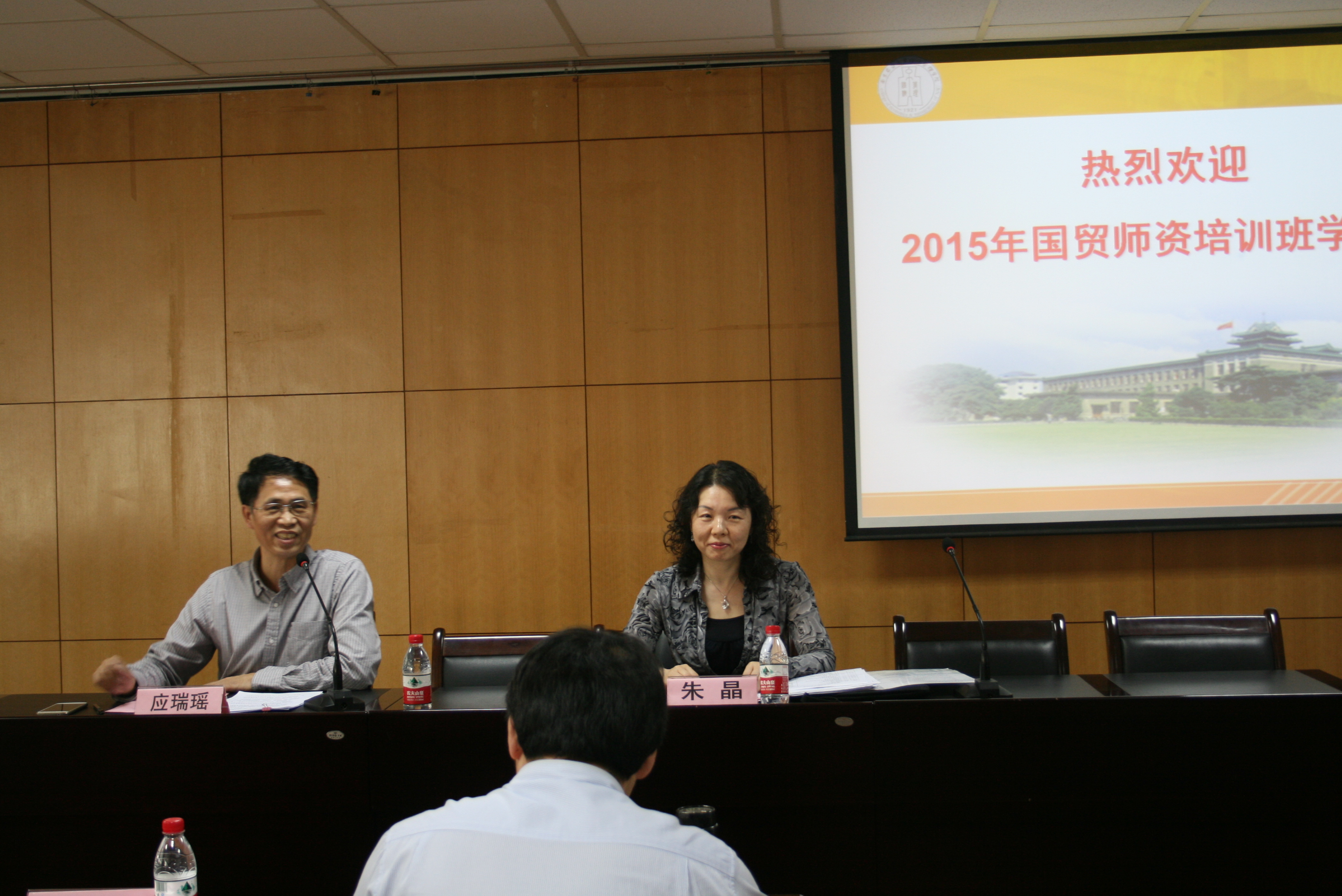 2015年5月20日下午,江苏高校国际贸易专业青年教师培训班开班典礼在我校举行,此次培训班受江苏省教育厅委托,由我校英国正版365官方网站承办,来自江苏省30多所高校的近50位青年教师参加了培训。英国正版365官方网站院长朱晶、副院长应瑞瑶、经济贸易系主任徐志刚,副主任周力、管理学系主任何军、青年教师孙顶强副教授出席了开班仪式,开班典礼由应瑞瑶主持。