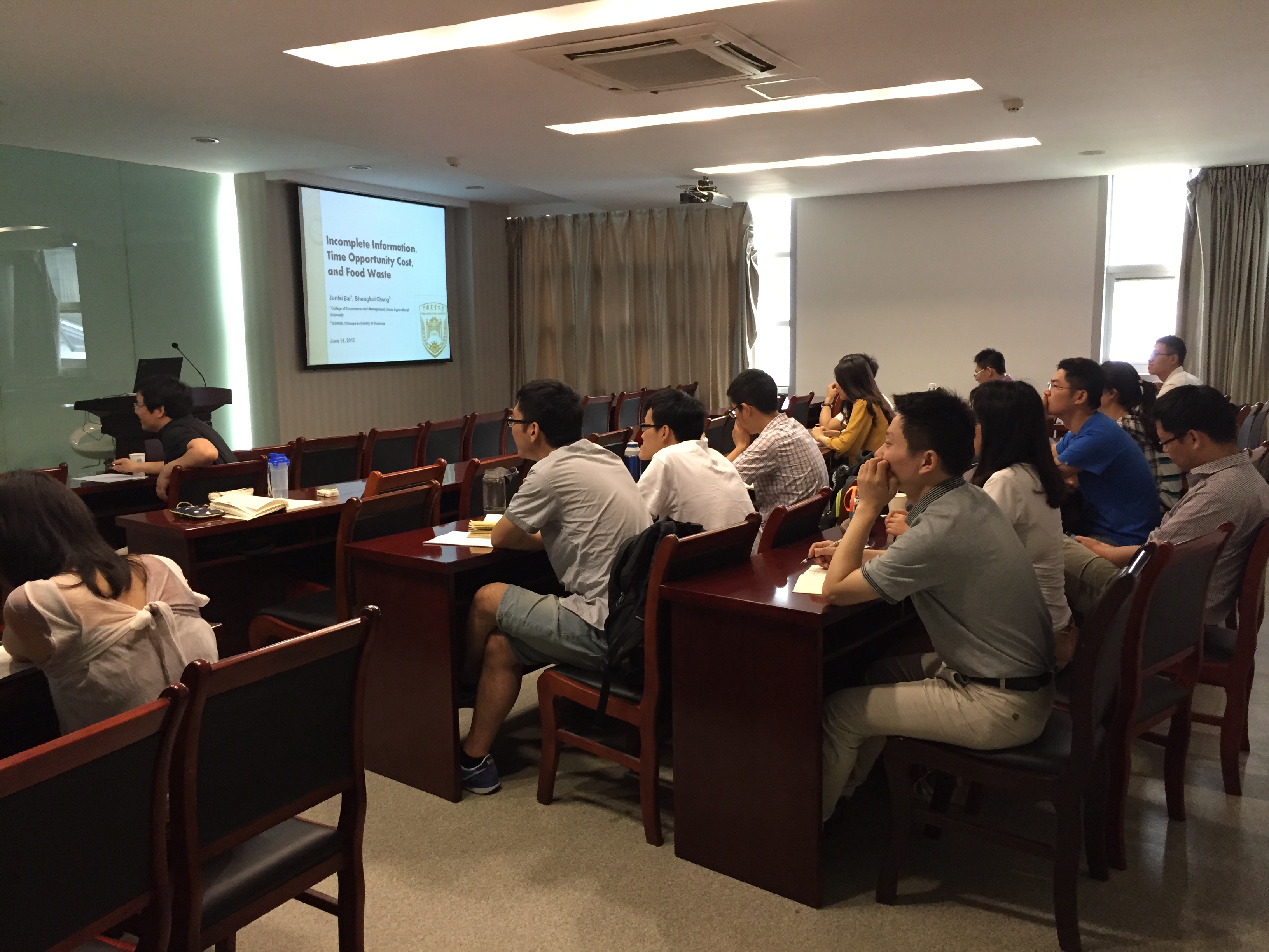 6月19日上午九点半,中国农业大学白军飞教授在逸夫楼5086为英国365官网师生作名为“不完全信息、时间机会成本与食物浪费”的学术报告,报告由徐志刚教授主持,田旭副教授、周德副教授、纪月清副教授等参加报告。