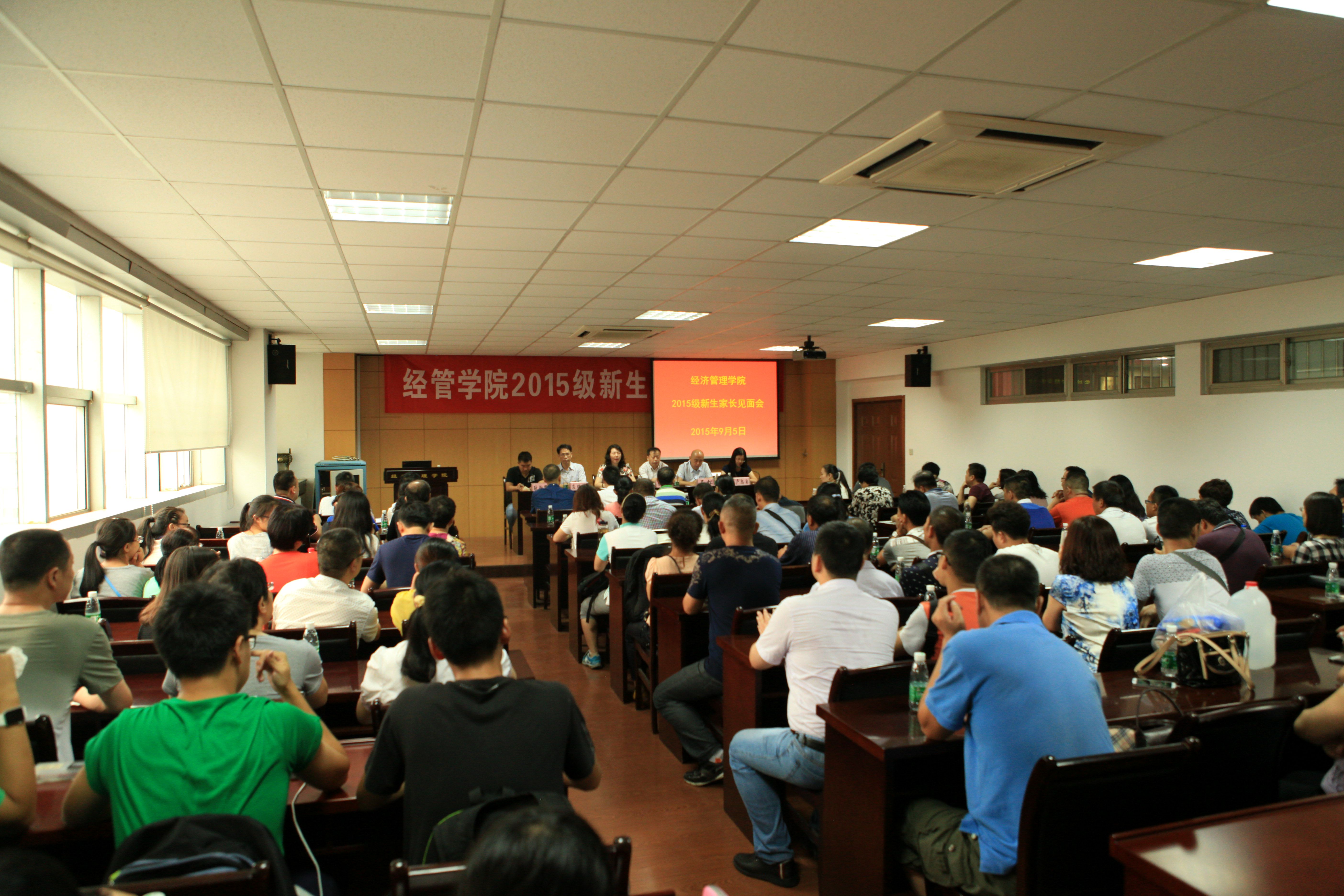 9月5日下午,英国正版365官方网站2015级新生家长见面会在英国正版365官方网站报告厅举行。英国正版365官方网站院长朱晶,院党委书记胡浩,副院长应瑞瑶、耿献辉,国际教育学院副院长石松以及学院各系系主任、辅导员、新生班主任出席。会议由学院党委副书记卢忠菊主持。
