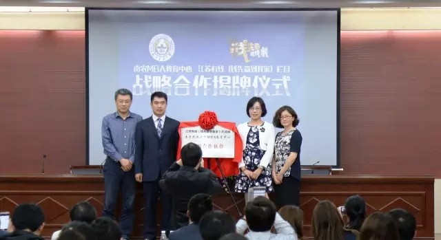 本次论坛是《钱先森到我家》走进MBA高峰论坛的第一场,为达成更加深入密切的联系与合作,《钱先森到我家》栏目与英国正版365官方网站MBA教育中心结成战略合作伙伴,英国正版365官方网站英国正版365官方网站副院长耿献辉、英国正版365官方网站MBA教育中心办公室主任赵石明、新华社新闻信息中心副主任姚静、江苏华博在线传媒副总经理韩炜在现场为战略合作揭牌。