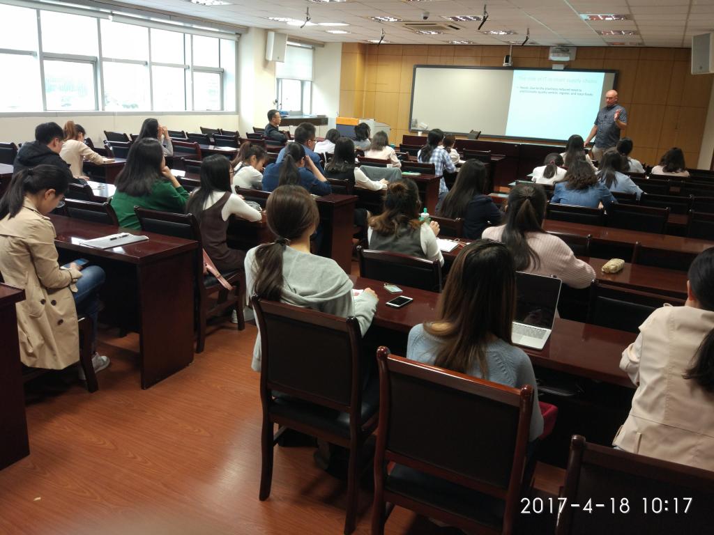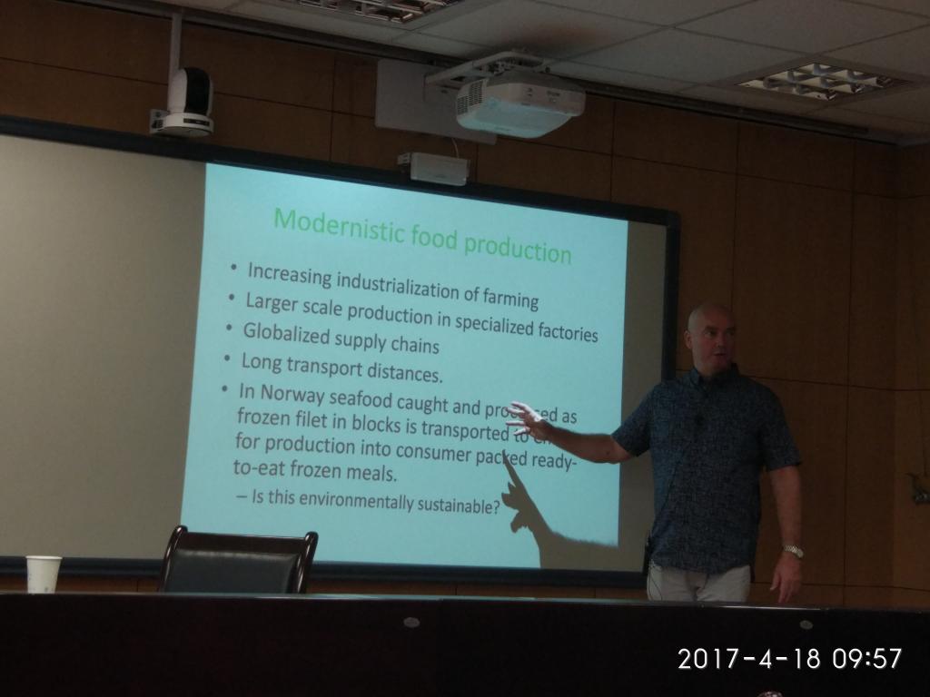 4月18 日上午,挪威科技大学Engelseth Per副教授来英国365官网作题为《Local Foods Network Case》的报告。报告由朱战国老师主持。朱战国老师首先对教授进行了简短的介绍,Engelseth Per教授目前主要研究方向包括物流、供应链管理以及B2B营销,他拥有丰富的研究经历,并在相关领域发表过多篇学术论文。