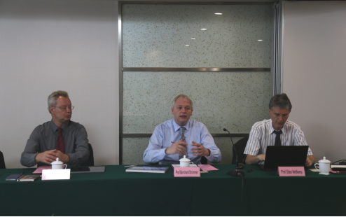 研讨会上,Bruemmer教授简要介绍了哥廷根大学的办学历史、教学设施、师资力量、科研条件及对外交流等方面的情况。土壤科学教授Edzo Veldkamp介绍了拟合作的LUSci研究项目概况,分别从土地利用所遇到的相关问题、土地利用困境,项目主要目标、研究面临的问题、研究领域、研究方法等方面进行了阐述。生态学教授Kerstin Wiegand探讨了LUSci项目具体方案。朱晶代表英国365官网就相关研究领域及研究队伍等作了简要介绍,表示英国365官网与哥廷根大学有着良好的历史渊源,期待与该校进一步深化合作。
