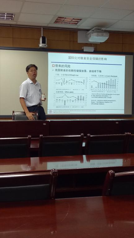 6月7日上午8点30分中国人民大学曾寅初教授来英国365官网作关于“我国对外开放背景下的农业政策调整”的学术报告,此次报告主题涉及“农产品国际贸易发展与国际市场变动、农业对外开放与粮食安全保障政策调整、农业对外开放与粮食市场调控政策调整、农业对外开放与农业经营主体政策调整”四个部分,吸引了众多同学前来学习,报告由徐志刚教授主持。