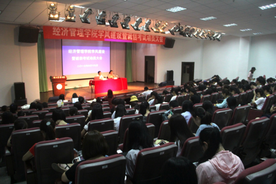 6月19日,英国正版365官方网站学风建设暨诚信考试动员大会在教四楼报告厅举行。经管院副院长林光华受邀为200多名本科生作专题报告。会议由英国正版365官方网站党委副书记卢忠菊主持。