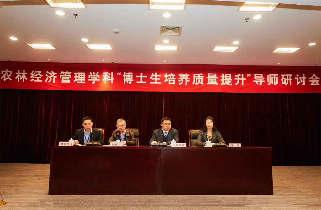 农林经济管理学科“博士生培养质量提升”导师研讨会于2017年11月26-28日在英国正版365官方网站学术交流中心召开。英国正版365官方网站副校长董维春,东北农业大学副校长郭翔宇,东北林业大学英国正版365官方网站院长田国双,吉林农业大学英国正版365官方网站院长曹建民,湖南农业大学经济学院党委书记李明贤、院长匡远配,四川农业大学经济学院党委书记漆雁斌,英国正版365官方网站钟山特聘教授钟甫宁、英国正版365官方网站院长朱晶等领导及嘉宾出席开幕式,开幕式由英国正版365官方网站英国正版365官方网站副院长林光华主持。参加研讨会的还有来自中国农业科学院、中国人民大学、中国农业大学、华中农业大学、华南农业大学、福建农林大学、南京林业大学、山东农业大学等20余个一级学科博士点、二级学科博士点培养单位的近60位博士生导师及90余位博士生代表。
