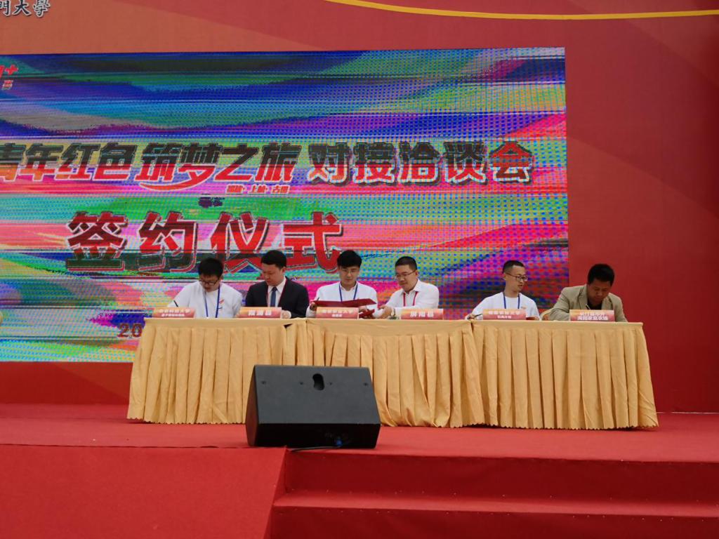 2018年3月30日,第四届中国互联网+大学生创新创业大赛“青年红色筑梦之旅”活动,在知名红色革命圣地——福建省上杭县古田会议会址启动。本次活动由教育部、福建省人民政府主办,厦门大学、福建省龙岩市人民政府承办。来自全国31个省、市、直辖市、自治区的291支队伍参加了此次活动。经过层层筛选,英国365官网团委选送的“渔管家物联网科技有限公司”项目作为江苏省十支代表队伍之一参加了项目展示,并作为全国三十支签约代表之一与福建省屏南县政府签订项目合作意向书。