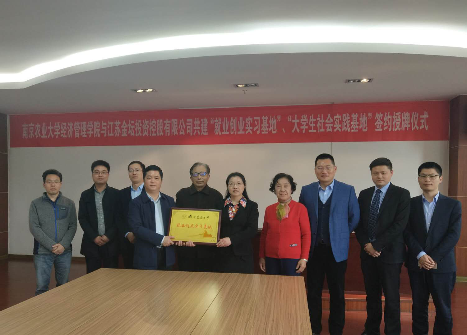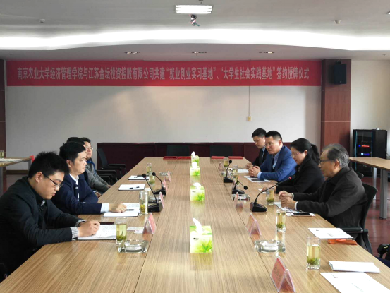 在江苏金坛投资控股有限公司,史荣生董事长对经管院一行表示热烈欢迎,介绍了单位发展概况和未来战略举措。卢忠菊介绍了学校“1235”发展战略、学院发展概况、人才培养创新举措和经管院毕业生总体情况。顾焕章教授表示,以签约授牌为新起点,希望两家单位深入合作,为师生多提供实习实践实训平台,为金坛控股推荐更多优秀毕业生,携手努力,协同发展。
