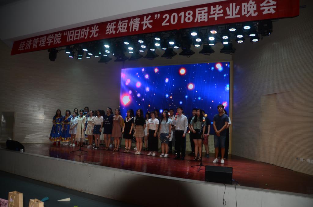 本次毕业生晚会分三个篇章,“时光·初见”、“时光·静好”、“时光·不散”。各毕业班、院艺术团、篮球队、足球队、排球队为晚会献上歌曲、舞蹈、器乐、情景剧等精心准备、形式多样的节目,现场不时掌声雷动,气氛热烈。大合唱《你曾是少年》将现场的氛围推向高潮。