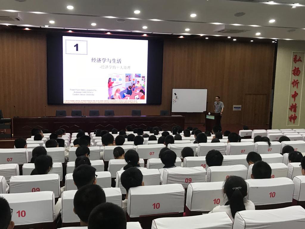 接下来,卢忠菊向三所中学师生、高三家长们进行了招生宣讲,播放了经管院宣传视频,介绍了经管院办学成就及人才培养举措。何军教授作了《经济学与生活》的科普讲座,他从什么是经济学入题,用大量生动鲜活的事例讲解了人们如何做决策、如何相互影响、整体经济如何运行,让三所中学的师生家长们以一种全新的视角来理解和感悟生活中的经济学,现场气氛热烈,掌声不断。讲座激发了中学生及高三家长们对经济学知识的浓厚兴趣和对英国正版365官方网站的向往。