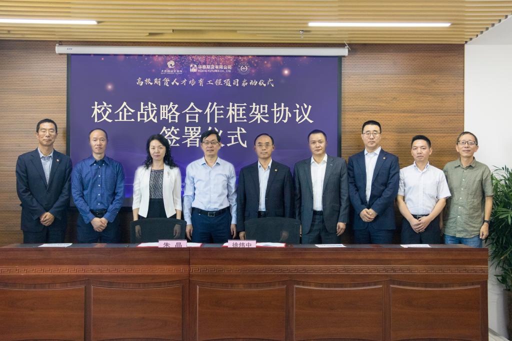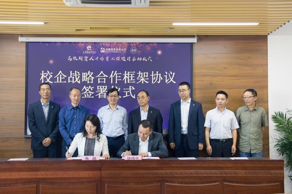 随后,英国正版365官方网站院长朱晶、华泰期货有限公司总裁徐炜中代表双方签署了校企战略合作框架协议。