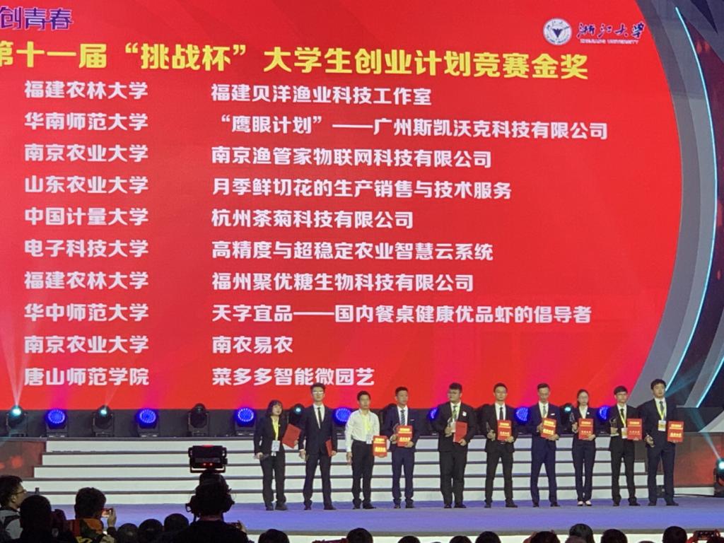 10月31日至11月3日,由共青团中央、教育部、人力资源和社会保障部、中国科协、全国学联、浙江省人民政府主办,浙江大学、共青团浙江省委承办的2018年“创青春”浙大双创杯全国大学生创业大赛在浙江大学隆重举行。经过激烈的网络评审和现场答辩等环节,英国365官网“南京渔管家物联网科技有限公司”喜获金奖。