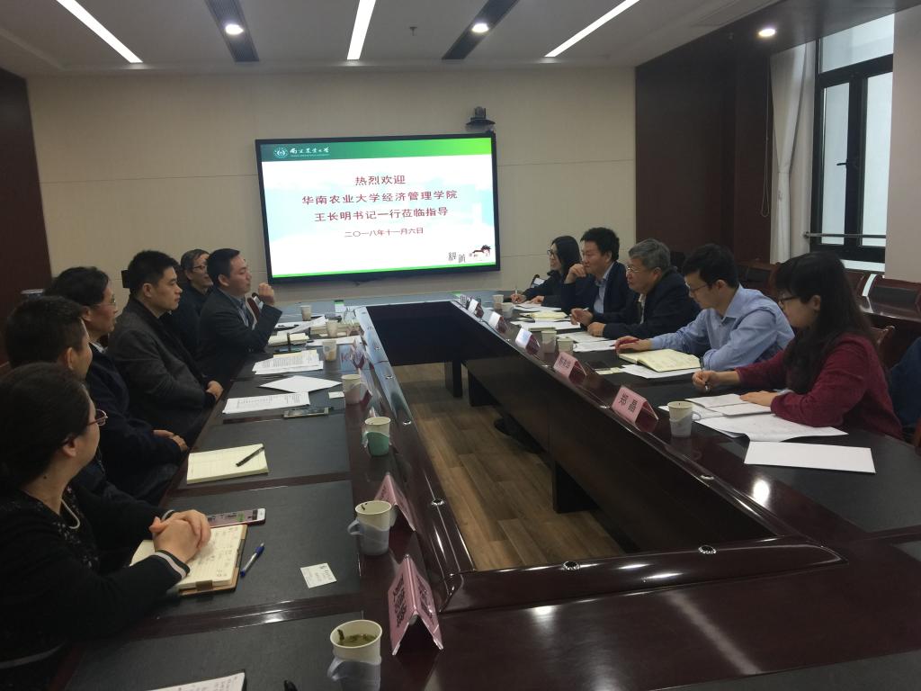 11月6日上午,华南农业大学英国正版365官方网站党委书记王长明一行5人来英国365官网考察交流。院党委副书记(主持工作)孙雪峰、副院长林光华教授接待了考察团一行。应用经济学学科点长应瑞瑶教授,农经系主任易福金教授,管理系主任何军教授等参加了座谈会。座谈会由孙雪峰主持。