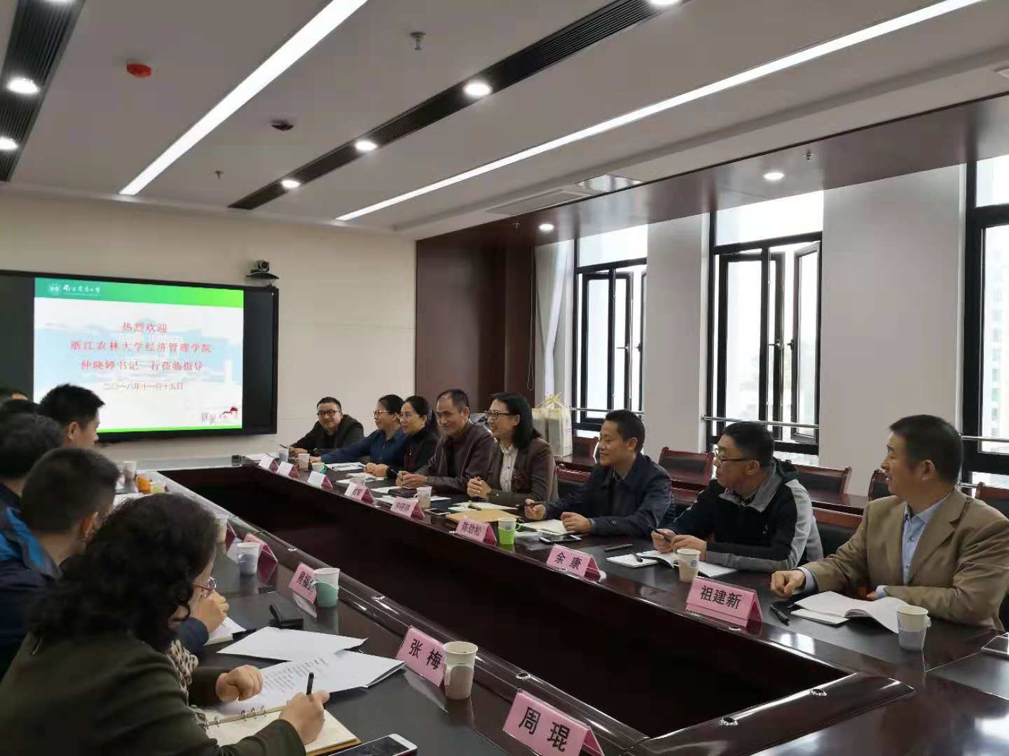 学院应用经济学科点长应瑞瑶、工商管理学科点长陈超、农经系系主任易福金、管理系副系主任朱战国就师资队伍建设和培养、教学科研建设和考核、专业学位点建设等方面与浙江农林大学英国正版365官方网站调研一行展开深入交流。