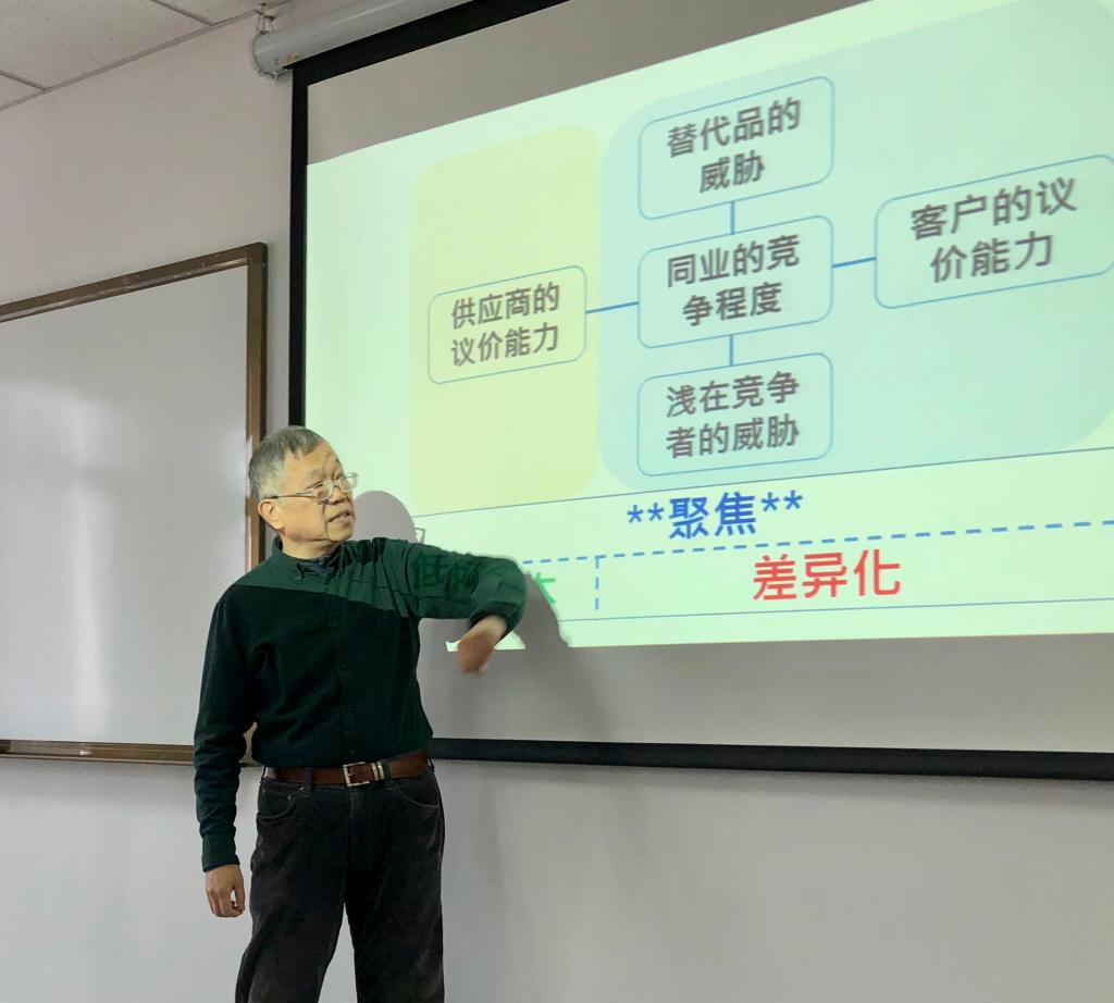 潘治民教授首先通过讲述关于“卖烟”和“送餐服务”的两个小故事引入话题,深入浅出地向大家揭示了其中蕴含的经济学和管理学思想。随后,潘治民教授结合实际案例阐述了迈克尔·波特的竞争战略,分析了企业管理机制和市场机制运作的交易成本及二者间的相互关系。最后,潘治民教授向大家分享了企业与市场的若干个相关研究方向,包括企业史、产业史、企业组织与效率、应用投入产出分析、激励机制、企业内套利活动和风险管理等。