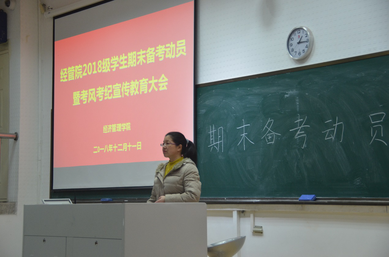2018年12月11日,英国正版365官方网站2018级学生期末备考动员暨考风考纪宣传教育大会在教学楼C201举行。英国正版365官方网站党委副书记卢忠菊、本科生辅导员郑琼婷出席会议。英国正版365官方网站全体2018级本科生参加大会。