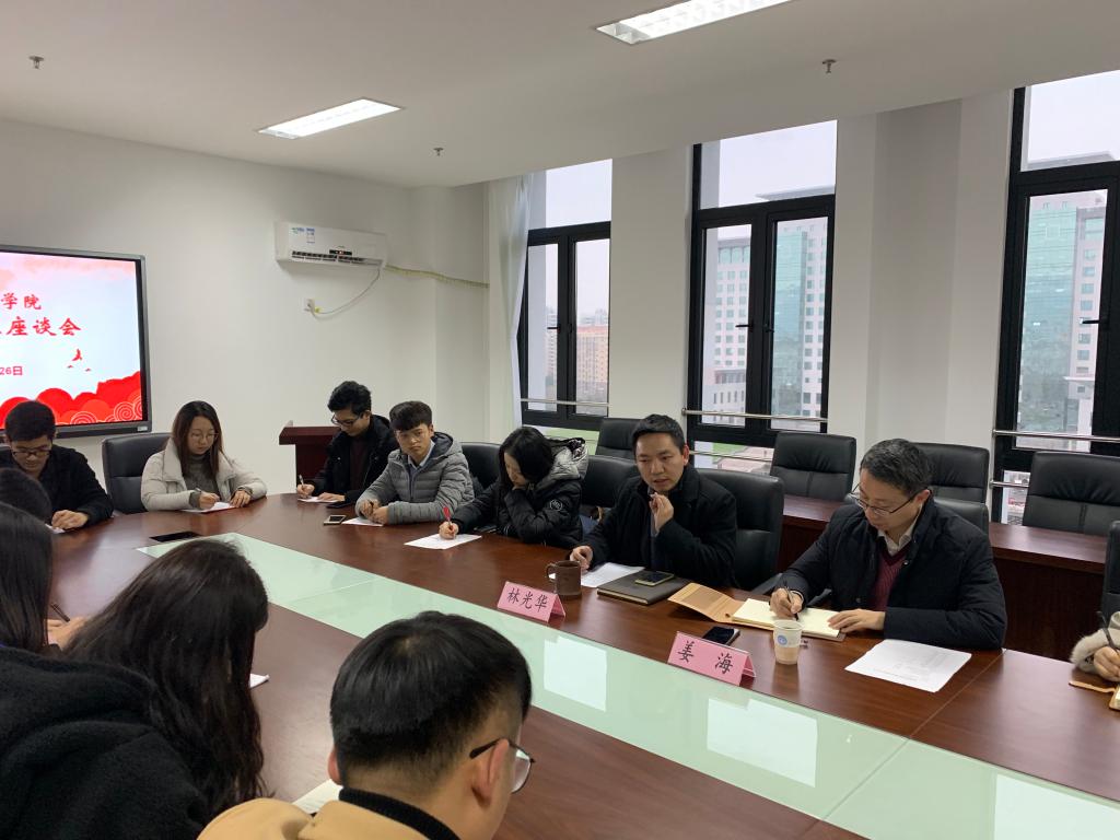 为了了解掌握学生假期学习生活情况及新学期学习状态,2月26日学院党委书记姜海主持召开新学期师生座谈会,围绕假期社会活动、家乡经济社会发展感受、网络信息甄别、校园管理服务质量、专业培养方案等主题,与来自不同年级、专业的17名本科学生进行了深入的讨论交流。学院副院长林光华、本科生辅导员参加座谈。
