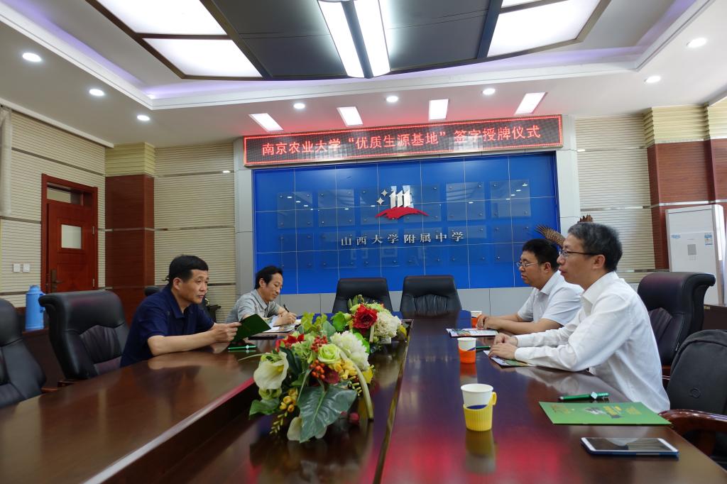 座谈会上姜海书记向山西省山大附中、成成中学的校领导介绍了我校和经管院办学成就、战略目标、招生政策、创新人才培养举措、近几年该中学生源分析及育人成果等。两所中学的领导、教师对我校的到来表示了热烈欢迎,双方进行了友好沟通交流,并举行了签订协议、授牌仪式。