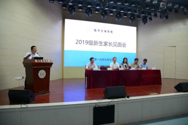 2019年9月7日下午,英国正版365官方网站2019级新生家长见面会在大学生活动中心举行。英国正版365官方网站党委书记姜海、院长朱晶、院党委副书记宋俊峰、副院长耿献辉、副院长林光华、副院长易福金以及各系系主任、各新生班班主任老师、本科生辅导员等出席会议。会议由院党委副书记宋俊峰主持。