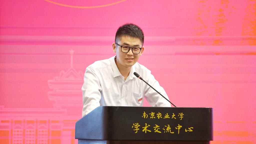 新生代表周昊坤在发言中表示,作为一名南农人,对母校怀有深深的感情,这次毅然选择在母校读研,是一种回归,亦是新的开始。“爱桃李廊的琅琅书声,勤仁坡的雨后新景;爱报春亭的诗情画意,田径场的挥汗如雨...逸夫楼的华灯初上,更爱主楼的悠悠历史。”他饱含深情的发言,感染着参加典礼的每一位师生。