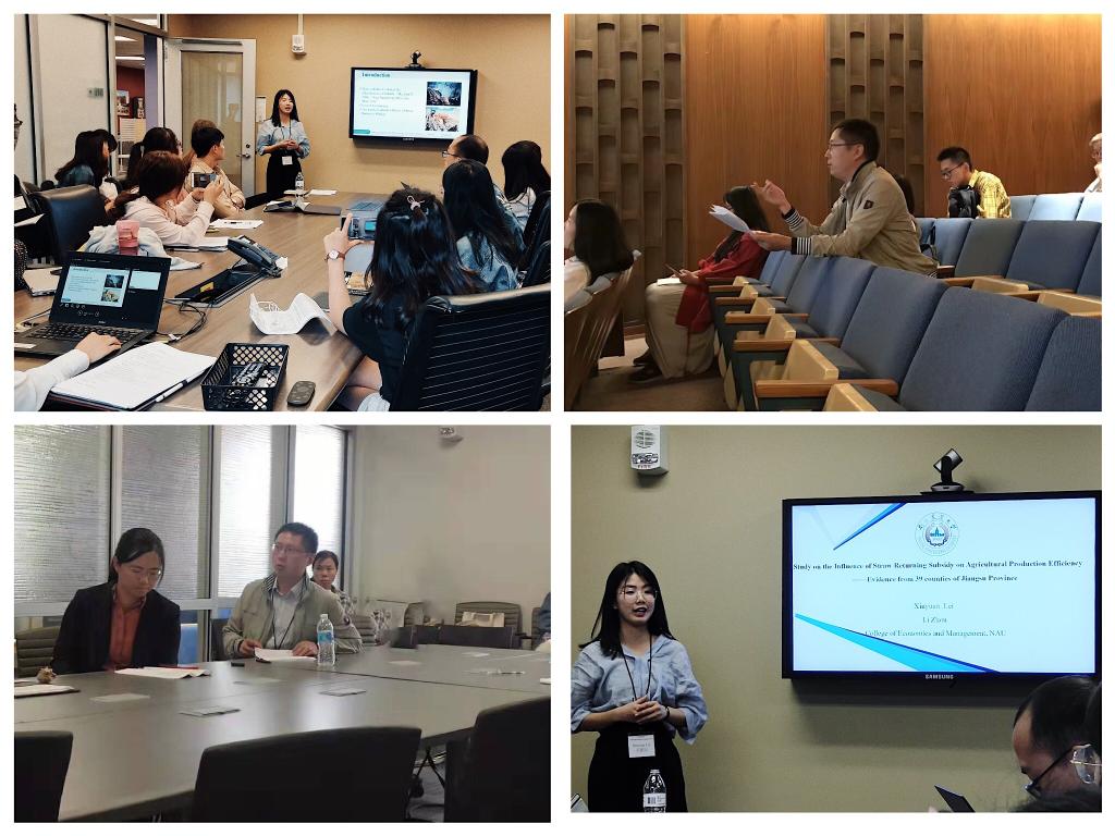 期间,访学团还应邀参加了首届China—US青年学者论坛,来自英国正版365官方网站、浙江大学、普渡大学、密西根州立大学、伊利诺伊大学等高校50余名师生参加了论坛。论坛安排有国际贸易、环境与自然资源、劳动力与人力资本、消费者与市场行为、农业生产力、农场有效管理等六个专场报告,团队成员雷馨圆同学代表学院进行了全英文汇报,展进涛教授应邀作为点评嘉宾全程参与了交流。