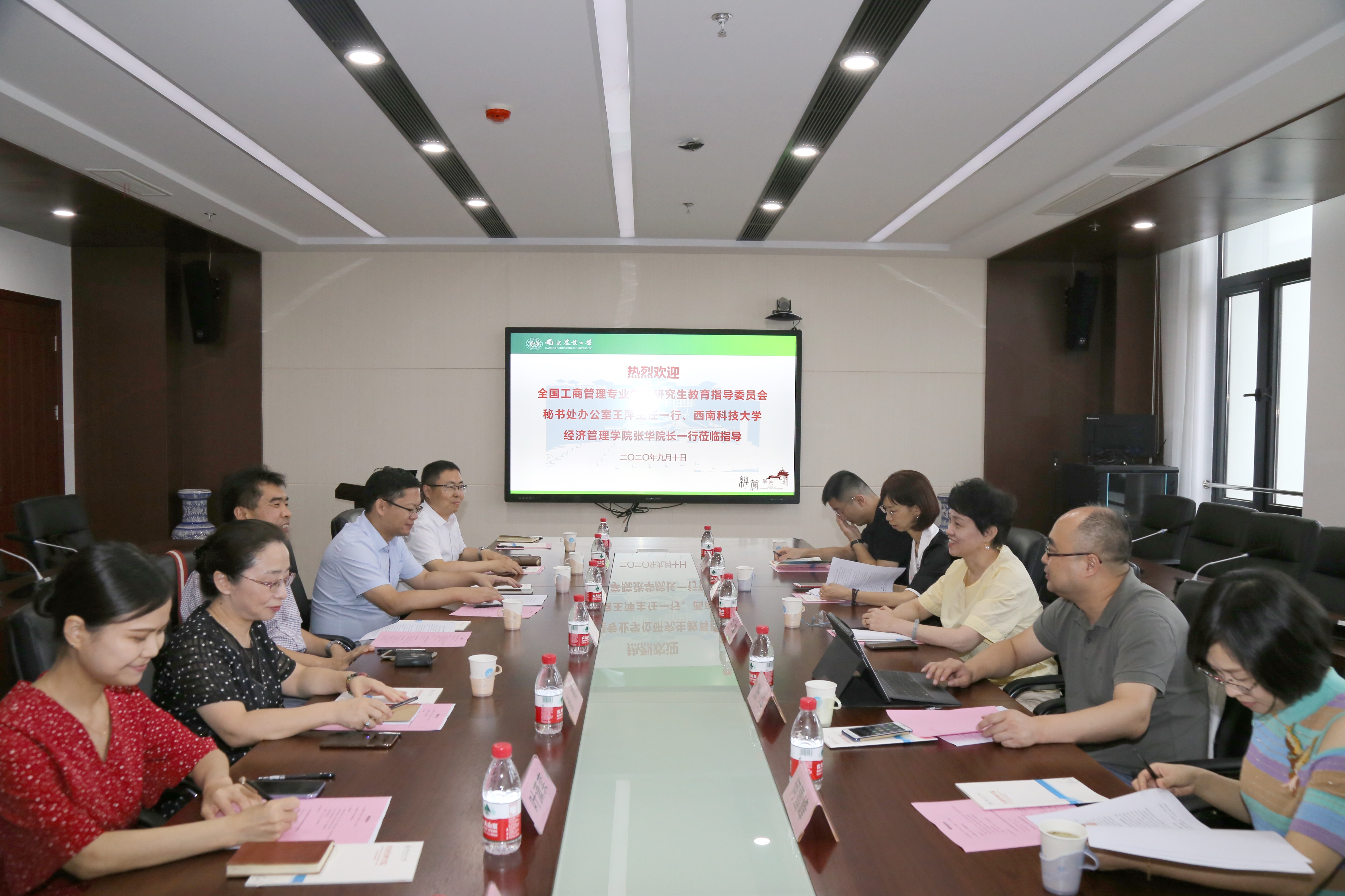 9月10日下午,全国工商管理专业学位研究生教育指导委员会秘书处办公室主任王萍、西南科技大学英国正版365官方网站院长张华一行5人来英国365官网调研,双方围绕MBA课程设置、师资队伍建设、案例开发等主题展开交流,副院长耿献辉接待了调研组一行,巩师恩副教授、学院办公室以及MBA中心办公室工作人员参加了座谈会,会议由耿献辉主持。