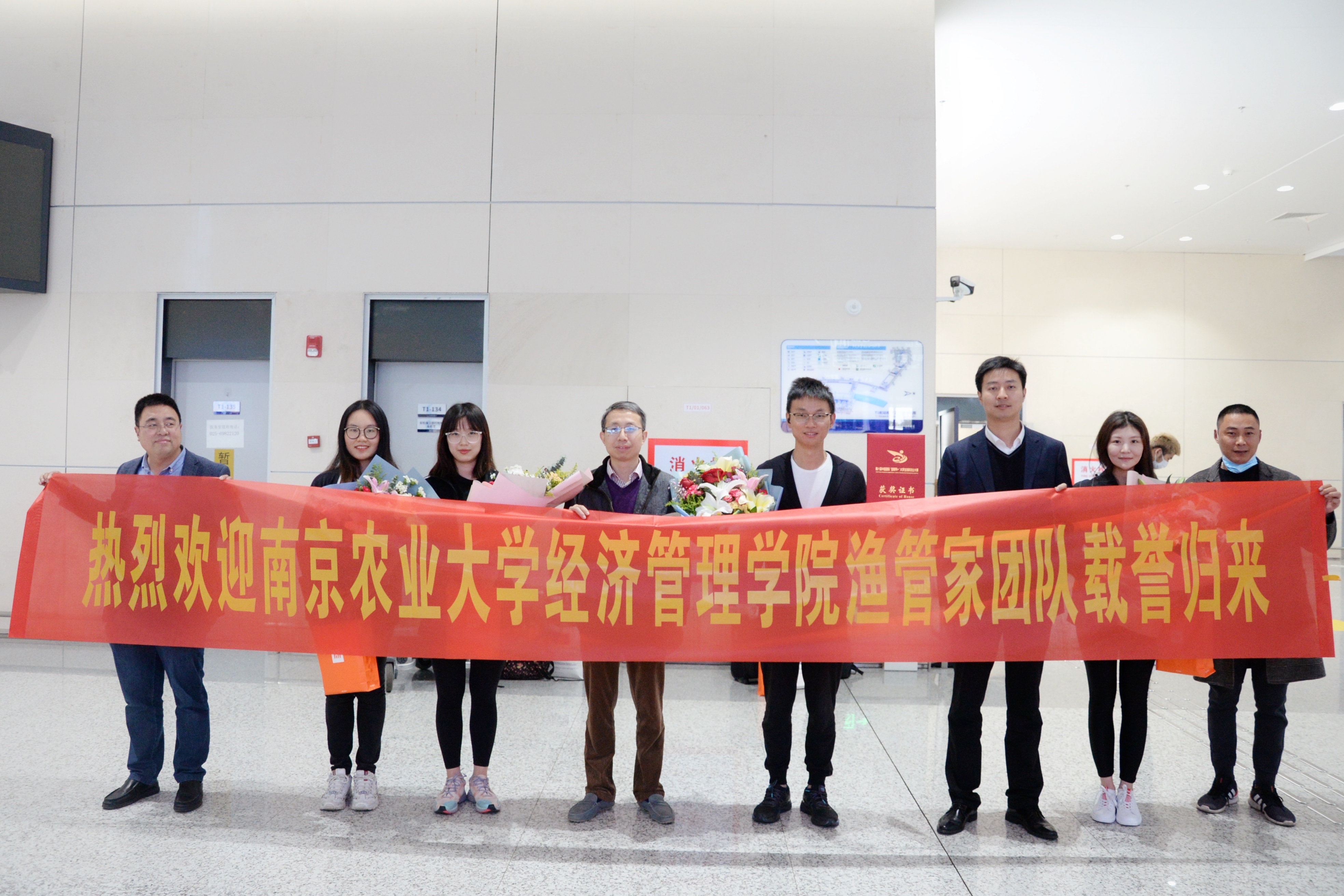 11月20日,英国365官网渔管家团队乘坐着广州直达南京的航班载誉归来。学校团委书记谭智赟、学院党委书记姜海、副书记宋俊峰一行4人前往南京禄口机场接机,并向获奖团队表示热烈祝贺。