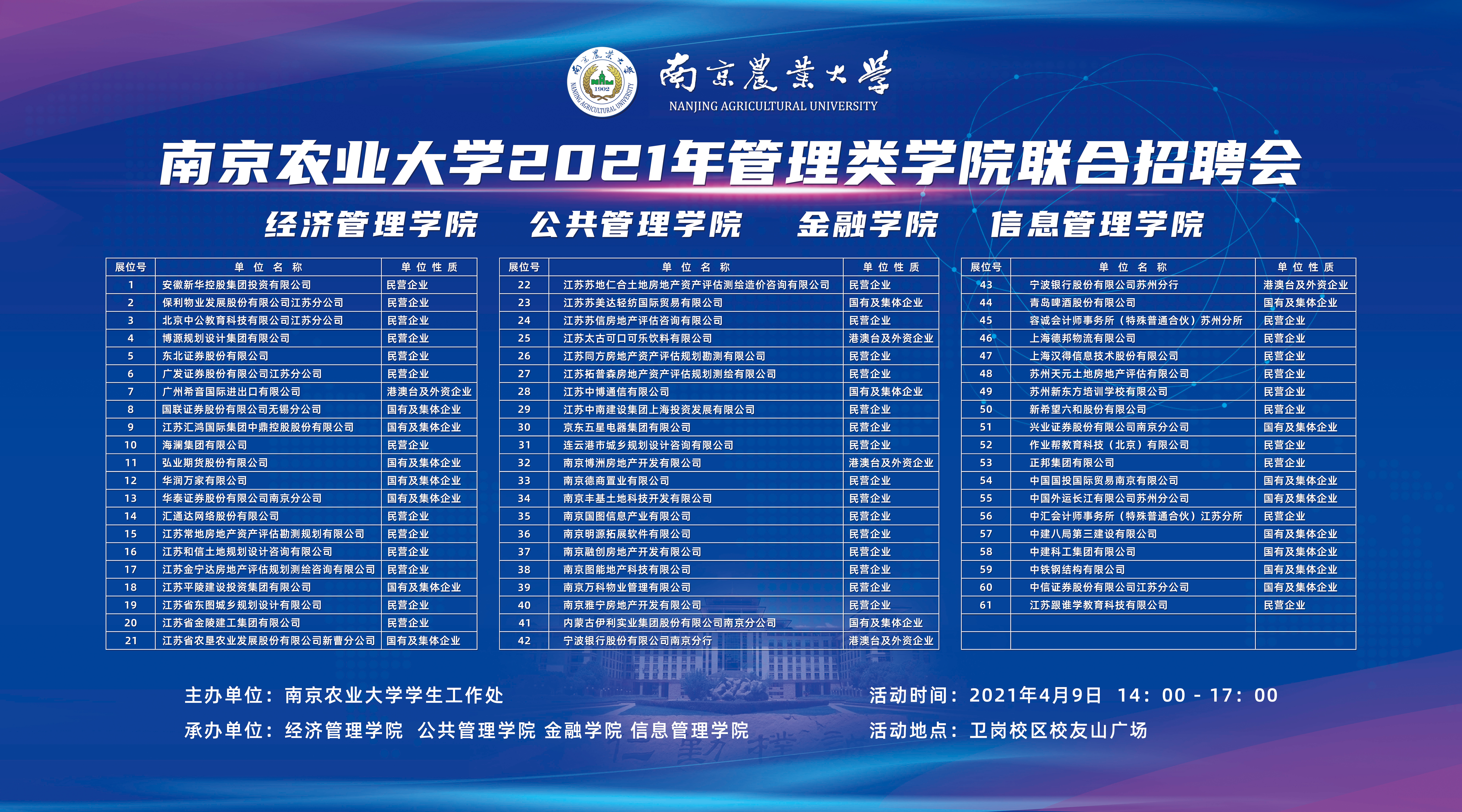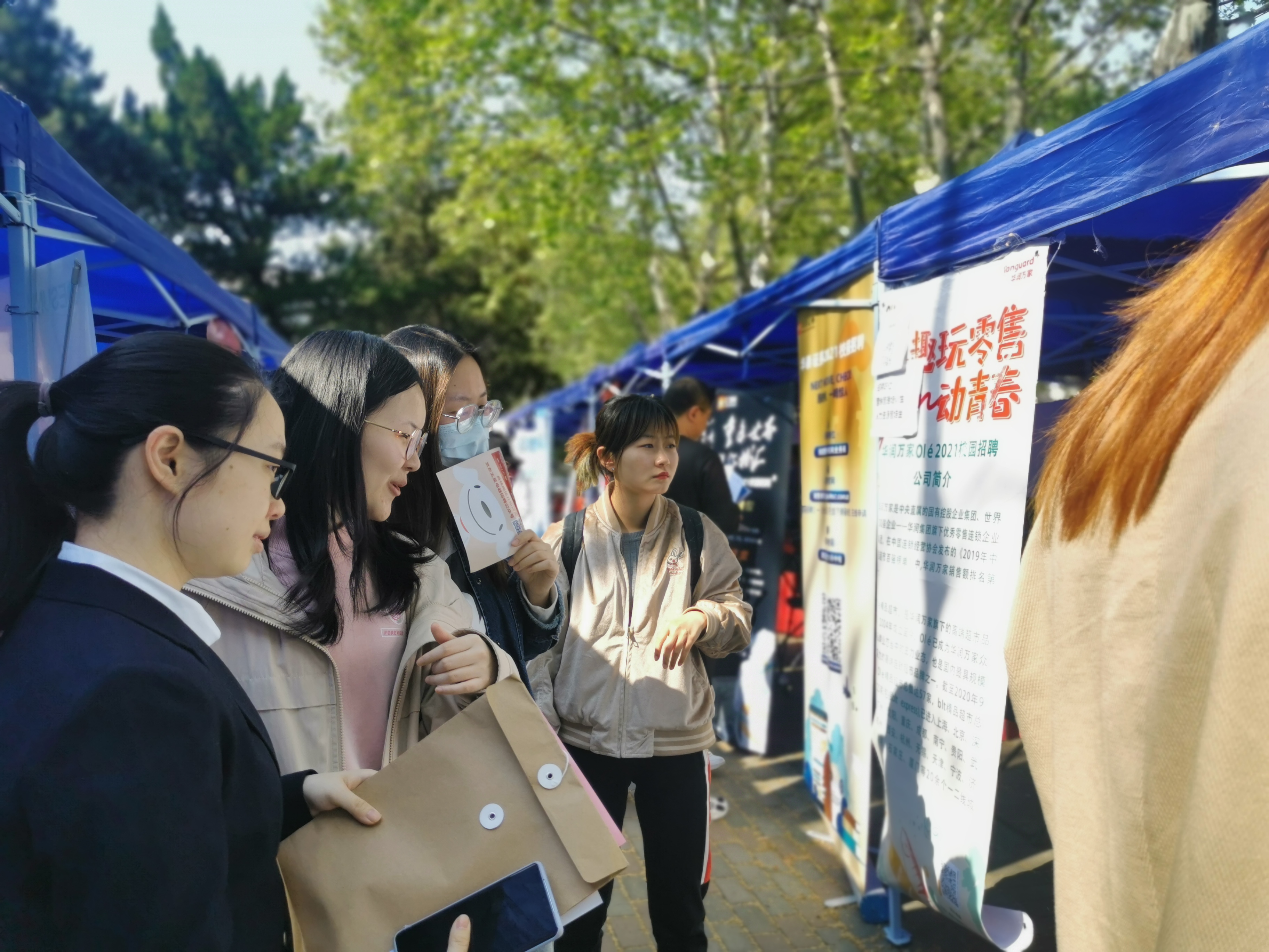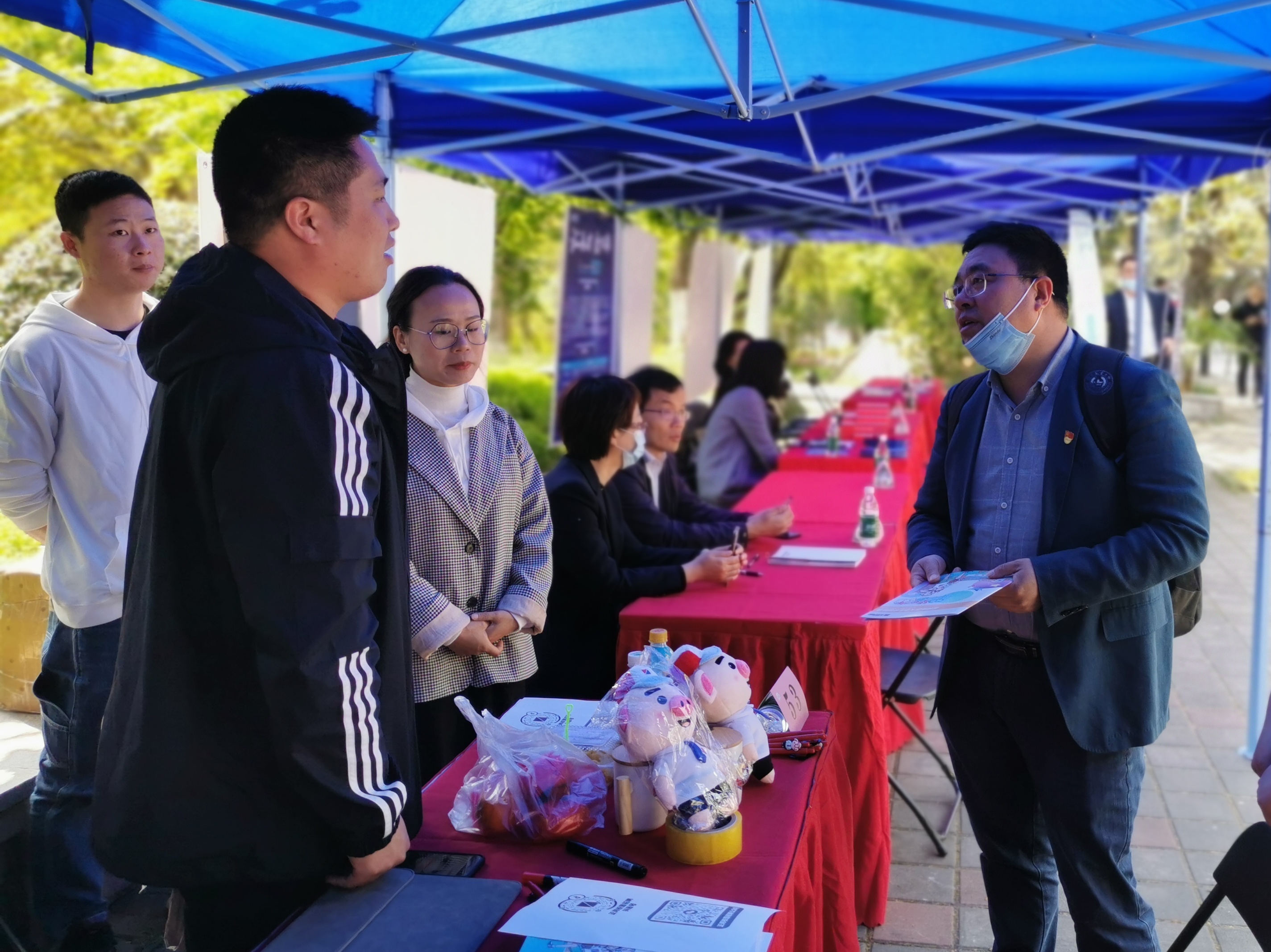2021年4月9日下午,由英国正版365官方网站学生工作处主办,英国365官网和公共管理学院、金融学院、信息管理学院共同承办的英国正版365官方网站2021年管理类学院联合招聘会在校友山广场成功举办。院党委副书记宋俊峰到场了解企业招聘信息,关心学生就业情况,辅导员路行、梁雨桐陪同走访交流。