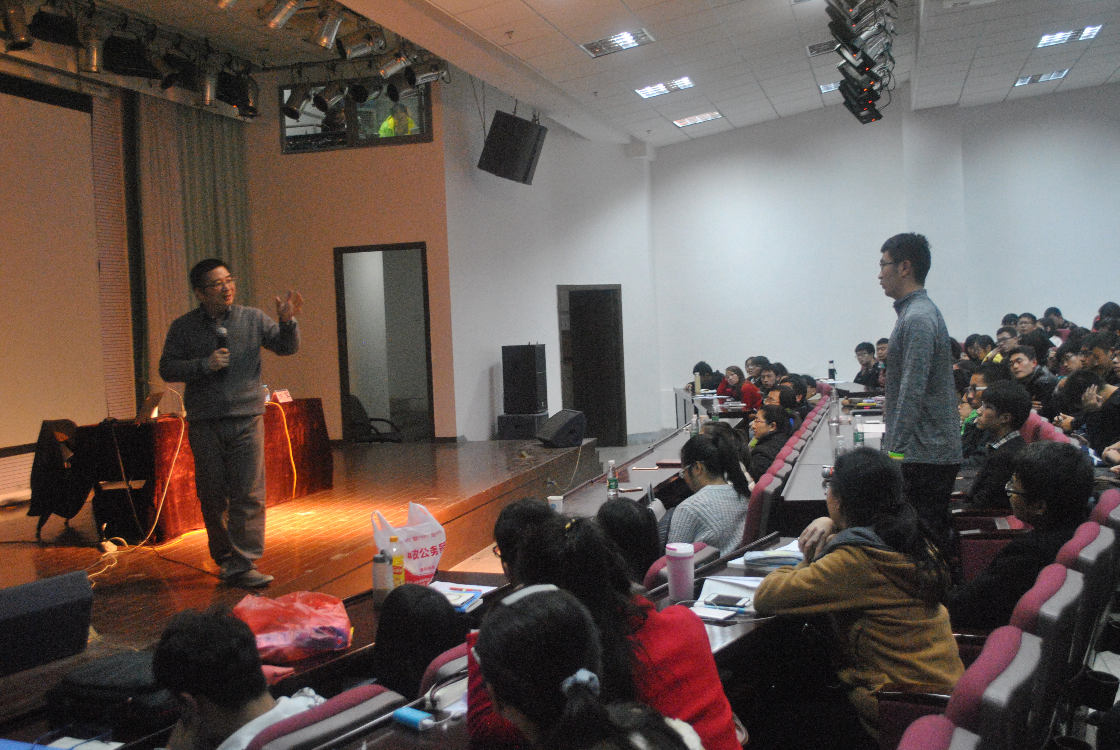 讲座后,郭教授和同学们进行了深入交流,并现场解答了同学们提出的问题。对当下一些互联网热点问题进行了解读和分析,引发了到场学生对互联网+浓厚兴趣和热烈讨论。