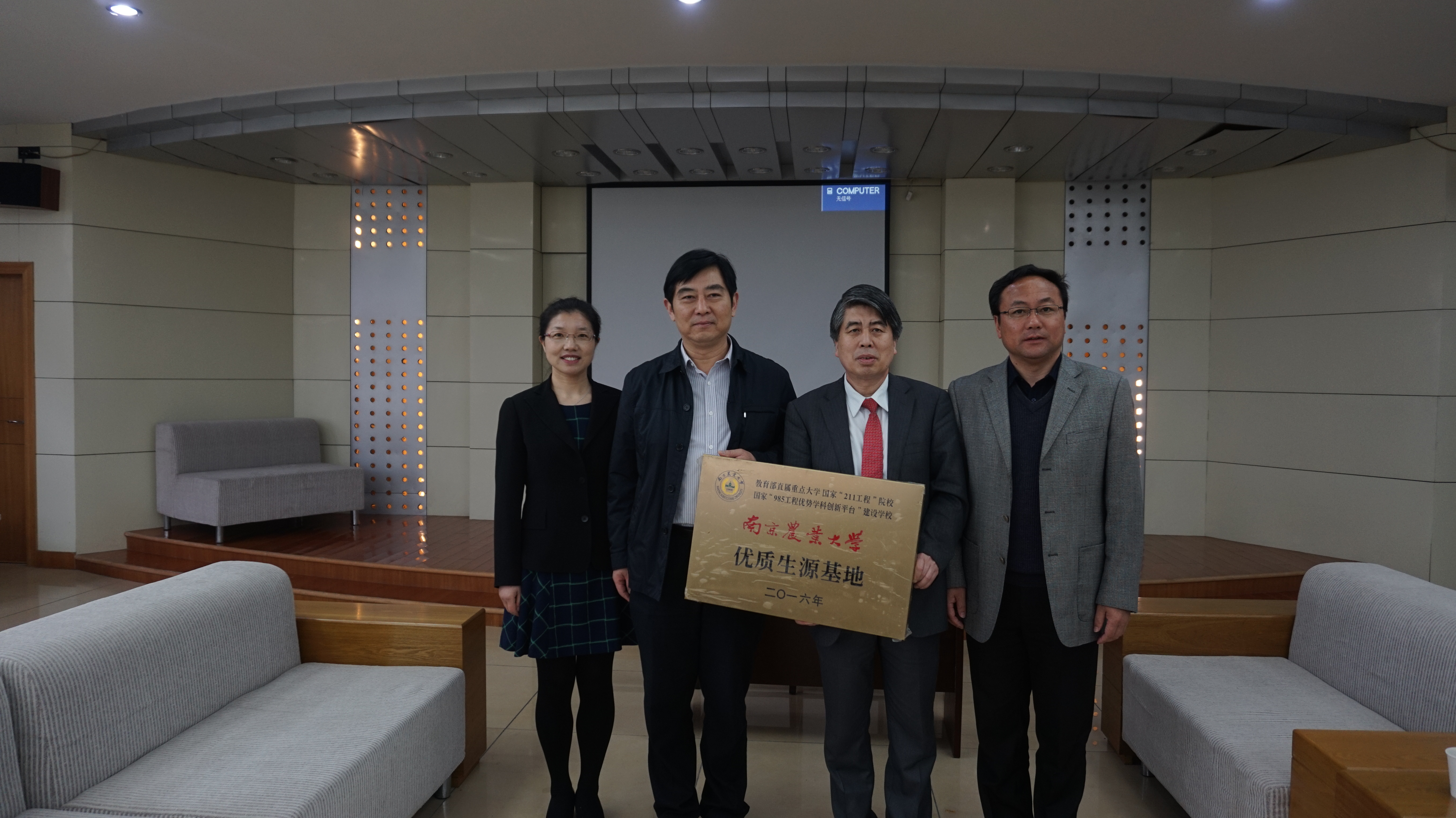 4月27日,在英国正版365官方网站的组织下,我校盐城招生宣传组赴江苏省大丰高级中学举行“优质生源基地”签约挂牌仪式。研究生院常务副院长侯喜林、英国正版365官方网站党委副书记卢忠菊等与大丰高级中学校长、党委书记徐天国等进行了座谈交流。我校首批“钟山教学名师”侯喜林教授应邀为中学生做了题为《园艺与生活》的科普讲座。