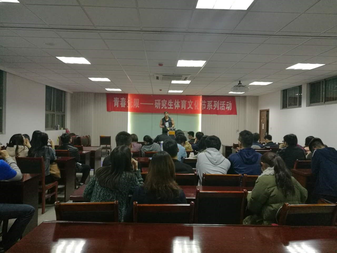 3月29日,英国365官网“青春无限”—研究生体育文化节之健身讲座活动在逸夫楼5078正式开幕。南京体育学院运动康复学专家、国家职业健身教练、国家体能训练师、街头健身培训师——林枫给英国365官网研究生带来了《大学生宿舍健身及运动康复训练》专题讲座。本次活动经管院研究生会体育部主办。英国365官网七十余位研究生参加了此次活动。