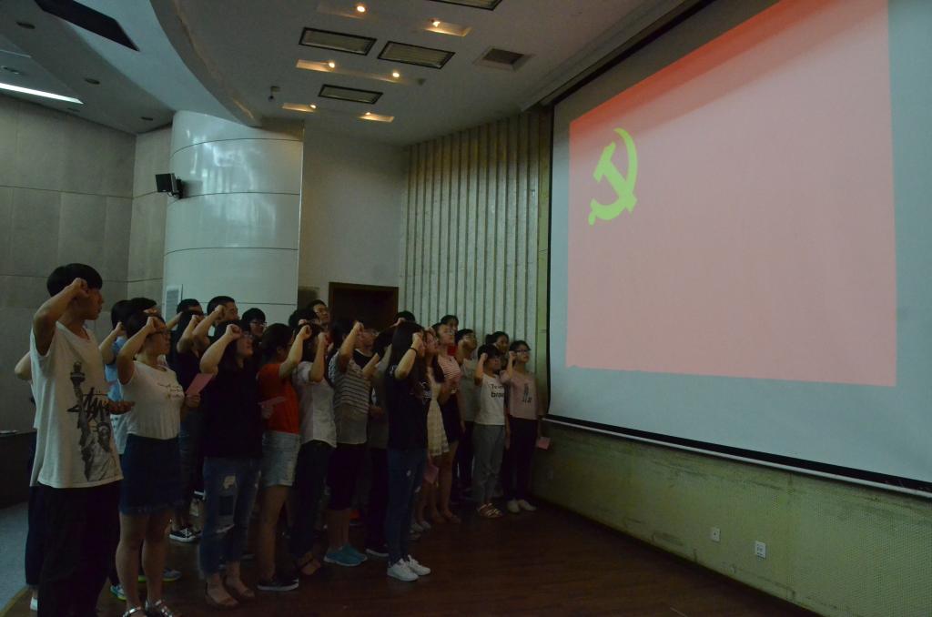 党课结束后,全体预备党员面向党旗进行了入党宣誓。