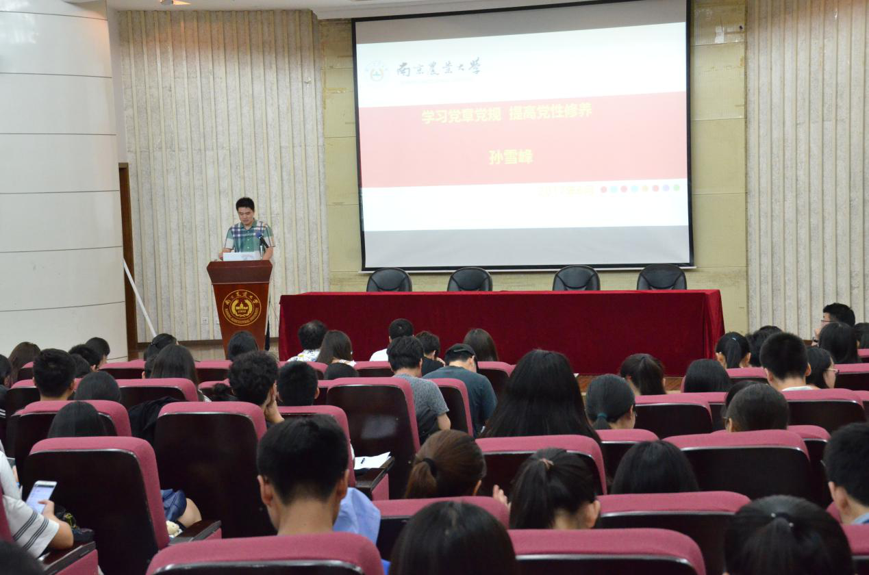 6月28日下午,英国正版365官方网站在图书馆报告厅举行“两学一做”专题党课,学院党委副书记(主持工作)孙雪峰为全体学生党员、预备党员、入党积极分子上了题为《学习党章党规,提高党性修养》的专题党课。