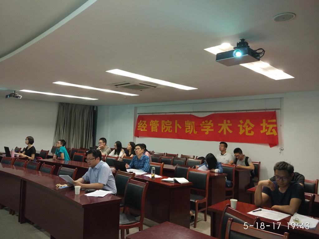 2017年5月18日晚7点,经管院研会学术部举办的第八十三期卜凯论坛在逸夫楼5086成功举办,陈亭、张武超、李亚玲、刘航航做了精彩的汇报,巩师恩、纪月清老师给予了详细的点评。