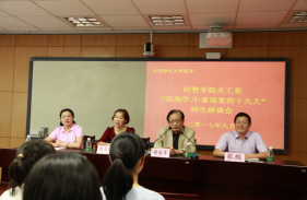 9月29日下午,英国正版365官方网站新生入学教育之“崇尚学习 喜迎党的十九大”师生座谈会在逸夫楼5045报告厅举行。校关工委副主任贾翠芳,校关工委秘书长张鲲,经管院关工委常务副主任顾焕章教授,经管院党委副书记、关工委主任卢忠菊和本科生辅导员出席本次会议,2017级本科新生参加此次会议。会议由卢忠菊主持。